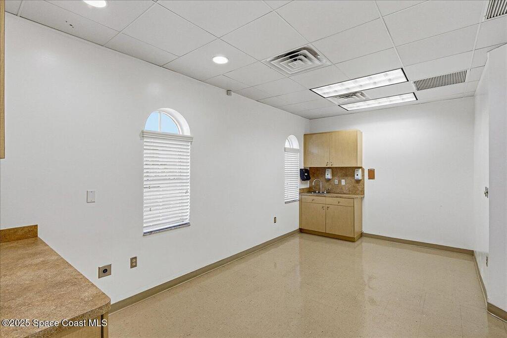 Beautifully Finished and Well Maintained 3,025 SF Medical Office with Waiting Room (shared), Reception, Nurses' Station, Five Exam Rooms, Large Procedure Room, X-Ray, Consult, Break Room with Exterior Entry Door, Office Manager and Two Doctors' Offices. Spyglass Plaza has Mediterranean style architecture buildings of CBS construction with IMPACT windows and barrel tile roofs. It is designed with plenty of parking for medical use and has two access drives at the east and west sides. Monument signage for this unit is available on the west sign. Spyglass Hill Road's corridor is almost exclusively medical and encompasses Viera's Spyglass Medical District. It is less than 2 miles from Viera Hospital, just minutes to I-95 @ Wickham Rd. and about 4 miles to US-1 at Viera Blvd. It is home to many physicians, medical associations, and professional offices, and adjacent to large residential areas.