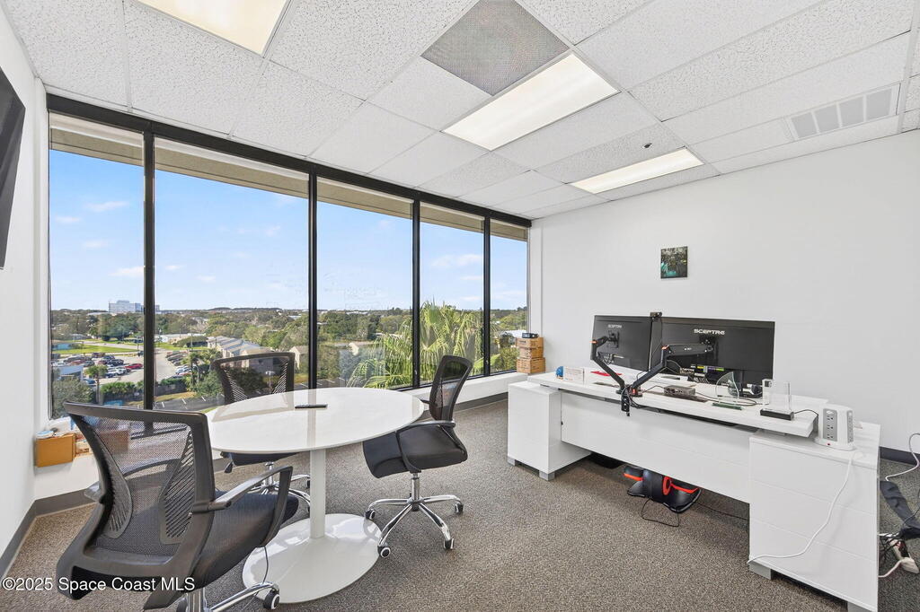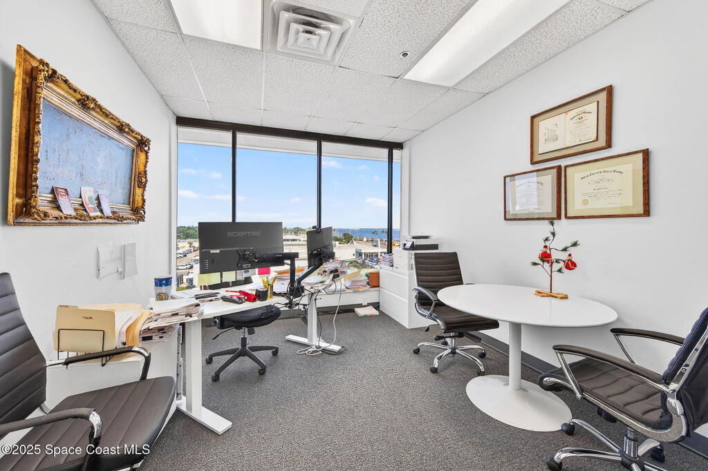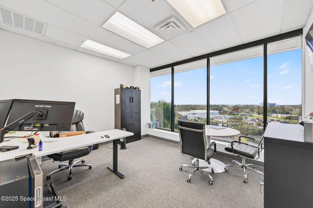 5th-floor, 2,085 sq ft Class A office suite with three river-view offices, three additional private offices, a large bullpen, and two secure storage rooms. Includes a break room with full refrigerator, two entrances, and access to common-area restrooms. Close to the airport and major employers, with strong visibility on Harbor City Blvd (32,000 cars/day). All offices include new solar shades, and the property offers ample parking.