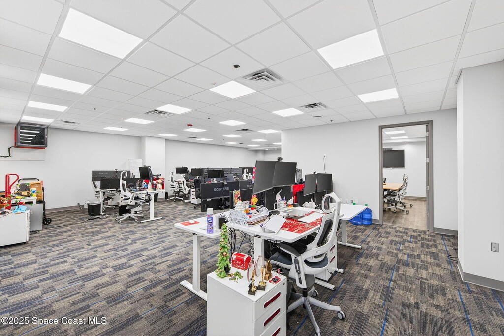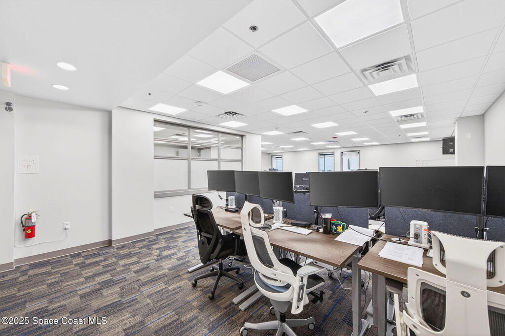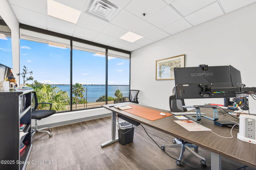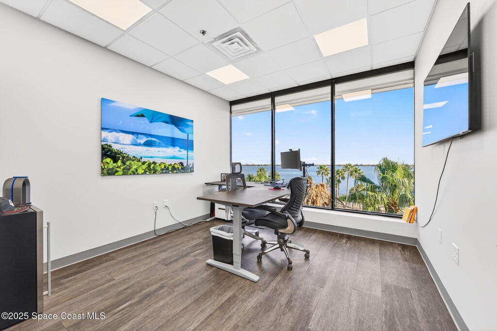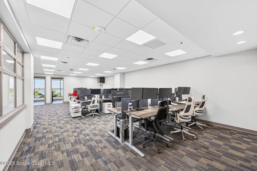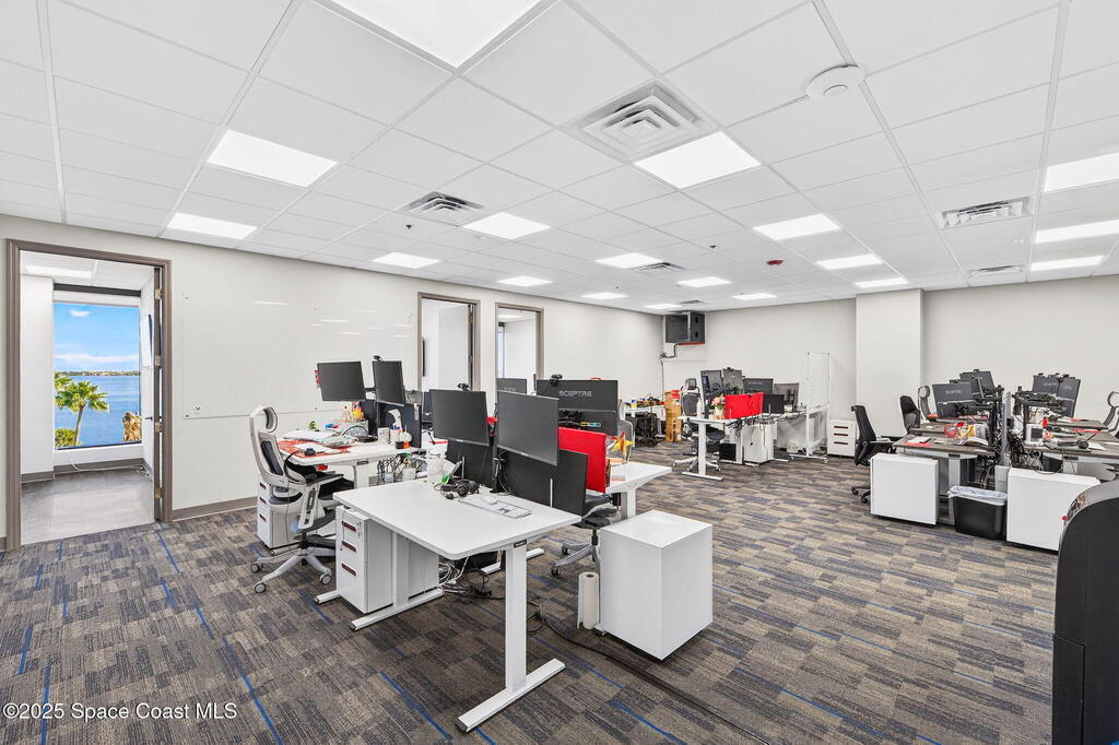 Professional 5th-floor, 1,852 sq ft suite featuring three river-view offices, a large open bullpen, and a conference room with interior windows facing the workspace. A double-door entry creates a strong corporate presence, with access to common-area restrooms. Close to the airport and major employers, with high visibility on Harbor City Blvd (32,000 cars/day). All offices include new solar shades, and the property offers ample parking.