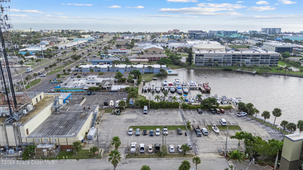Rare Cocoa Beach riverfront commercial opportunity on SR-520, the main gateway into Cocoa Beach. Listing price includes TWO parcels: Parcel ID 24-37-34-CI-46-11 and Parcel ID 24-37-34-CI-46-12.75, totaling 1.54 acres w/ approx. 500' of Indian River frontage. Property features an existing retail building, operating restaurant, and marina with 30 boat slips (3 w/ lifts), water/electric towers, and pump-out hatches throughout. The 0.49-acre riverfront parcel currently used as parking offers future redevelopment potential (possible multifamily/condo--buyer to verify). Includes liquor license (conveys w/ building) and existing inventory. Multiple income streams: commercial leases, restaurant, marina, and redevelopment upside. City beautification planned for SR-520 entrance + 221-unit mixed-use development planned across the street. Exceptional visibility, waterfront access, and long-term appreciation potential. Zoning is GW (Gateway) in the City of Cocoa Beach; Future Land Use Redevelopment
