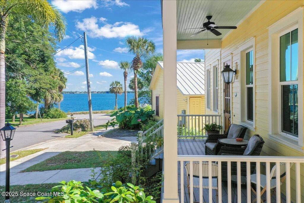 Rare opportunity to own a unique, income-producing waterfront property in Historic Cocoa Village! This Edwardian era fully furnished main house (former B&B) and furnished cottage (thriving Air BnB) sit on 133' of Indian River frontage with dock and 10,000 lb. boat lift. A stunning 2 level 2022 built home with elevator features a gourmet kitchen with Wolf gas range, Miele coffee maker, wine bar, brick accents, hand-scraped hardwood floors, and gorgeous views. Three spacious bedrooms and baths provide modern comforts. Property also includes a 3-car garage, utility room for tenants and a 1 bedroom apt above with patio and garden planters. All furniture in three buildings conveys, along with three active leases. Walk to Cocoa Village, watch rocket launches, walk, bike and run along the Indian River. Ideal for investors or multi-generational living!