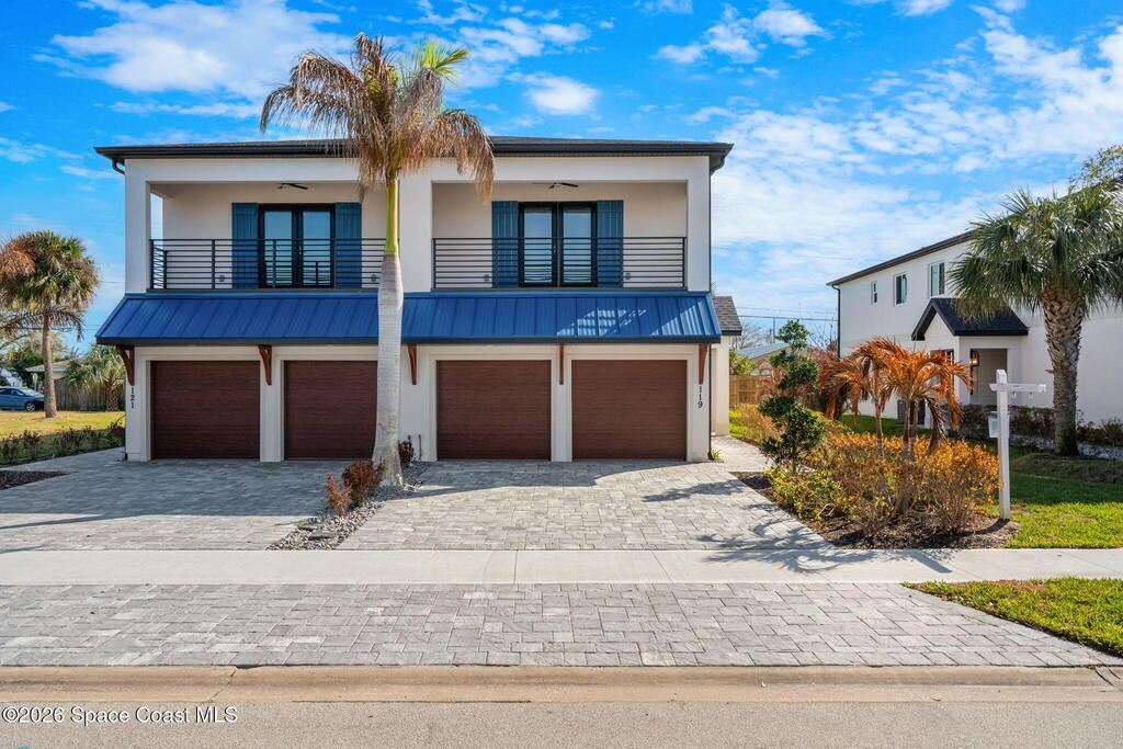 Where South Beach Style Meets Space Coast Comfort.RARE opportunity to own a 2025-built duplex just five blocks from the beach with NO HOA! Each side lives like a single-family home with a 2-car garage and 2,280 sq ft (4,560 total). Each unit offers 3 spacious bedrooms, 2.5 modern baths, and an open-concept layout that flows into a designer kitchen with quartz and granite countertops and stainless-steel appliances--ideal for everyday living or entertaining. An upstairs flex space is perfect for an office, gym, or media room. Unwind on the covered patio or private balcony off the owner's suite. Enjoy lush landscaping, a paved driveway with ample room for an RV, boat or extra parking, plus an outdoor shower for easy post-beach clean-up. Seller is also offering an identical duplex--purchase one or both! Just minutes to Port Canaveral, waterfront dining, cruise terminals, the Cocoa Beach Pier and prime rocket launch viewing from nearby Jefferson Ave beach access. Schedule your tour today!