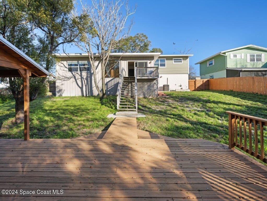 Beautifully remodeled home just 1 block from the river on a large private lot with Boat & RV parking and no HOA. The main floor features an additional suite with a private bathroom, perfect for use as a guest suite, additional master, mother-in-law suite, or home office. The home also has granite countertops, a breakfast bar, and a renovated deck. The spacious backyard and event-ready patio offer excellent outdoor living spaces. Additional highlights include an oversized 2-car garage and a storage-ready basement. Conveniently located near Cocoa Beach, The Space Center, and Port Canaveral, with easy access to Orlando just 45 minutes away. The property was firmly appraised at $465,000 by AMC on 01/25/2024. Only 6 minutes to the top rated Brevard Virtual Franchise, a highly acclaimed K-12 school. Schedule your showing today - this one won't last! Some photos are virtually staged.