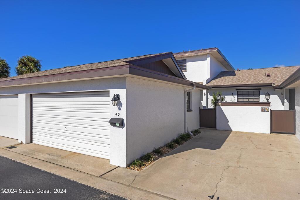 Great BEACHSIDE location. One block to the BEACH to PARADISE BEACH PARK. Large open floor plan. Large living room and dining room. Family Room off the living room. Eat-in-kitchen. 2 Master Suites upstairs. Beautiful tiled Den/Office off the master bedroom w/ Plantation Shutters. East facing unit with Courtyard Entry. Oversized TWO car garage. Near shopping and restaurants. Unit is being sold AS-IS with the right to inspect. Easy to show. Combination Lock Box.