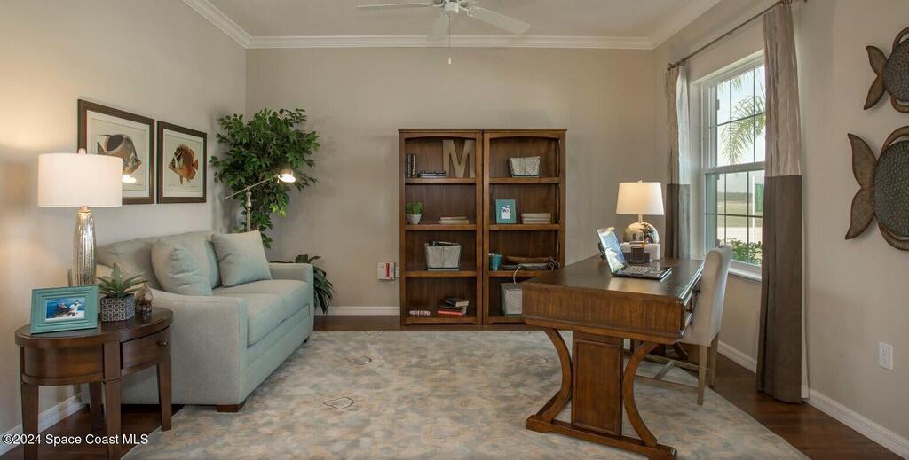 Living in Port St. John offers the perfect blend of natural beauty, convenience, and a relaxed, suburban atmosphere. Located along Florida's Space Coast, this charming community provides easy access to stunning beaches, parks, and recreational activities, while maintaining a peaceful, friendly environment. Whether you're enjoying the nearby waterways, local dining and shopping, or exploring the area's rich history and culture, Port St. John offers a vibrant yet tranquil lifestyle.The Sierra home design embraces casual elegance and delivers everything you need. The expansive layout features flexible spaces perfect for both family living and entertaining. Upon entering, you're welcomed by an impressive dining room and a private den with French double doors just off the foyer, ideal for an office or quiet retreat. The open-concept great room flows seamlessly into the exceptional kitchen, creating an inviting space for gatherings.