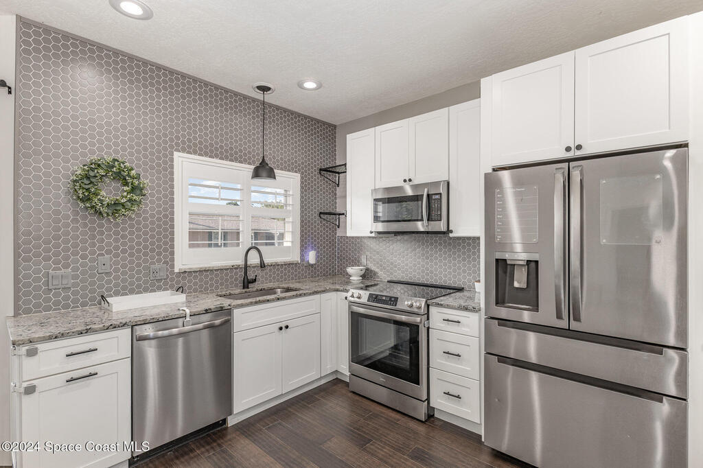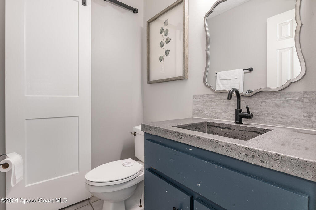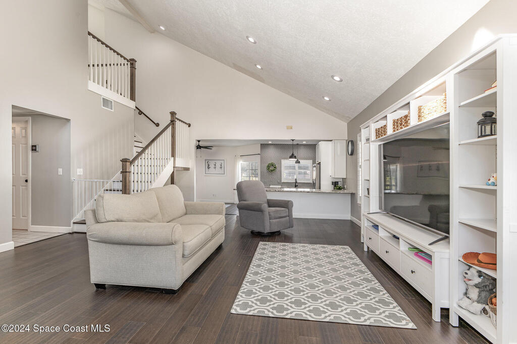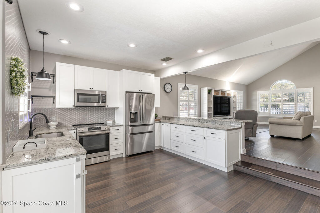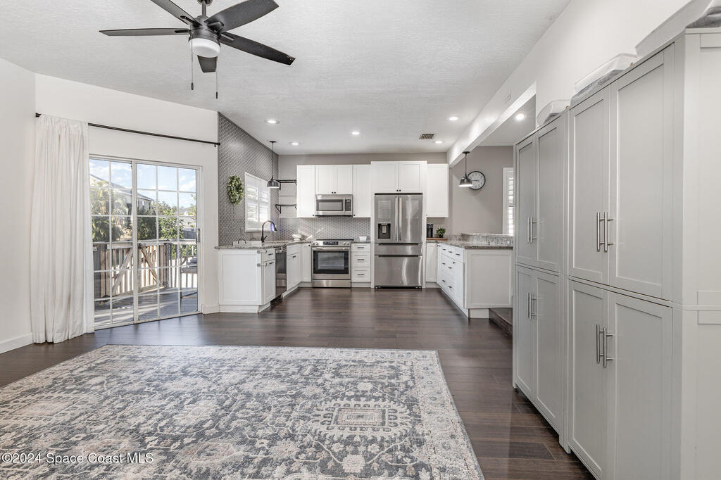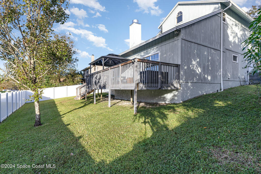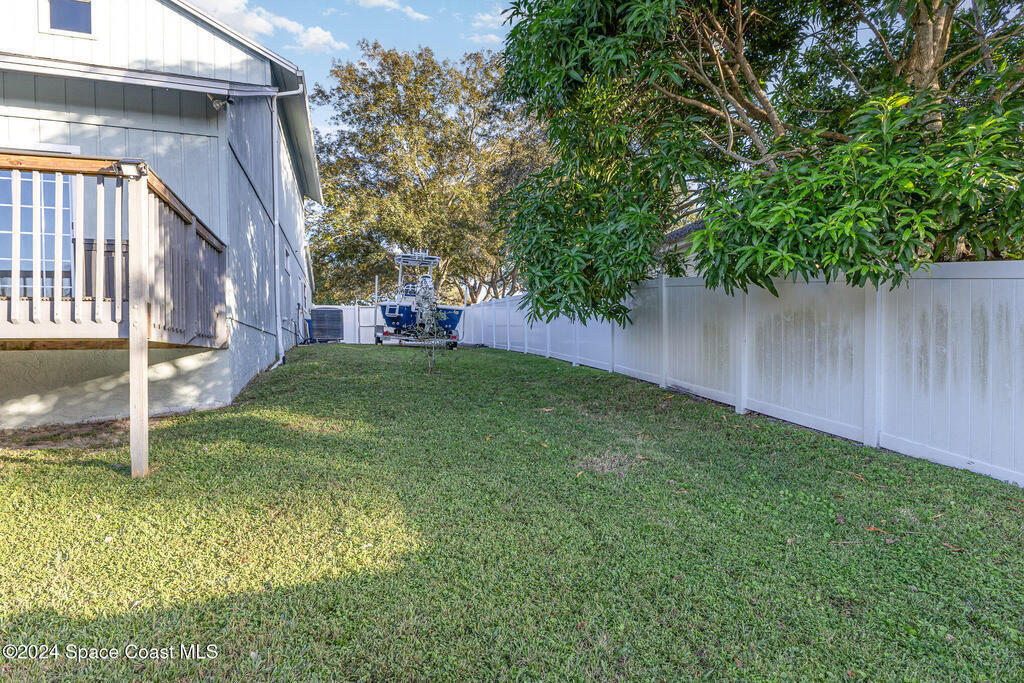 Adorable Recently Remodeled Home Very Open Floor Plan Light and Bright! Walking Distance to L3 Harris!! Upstairs holds 2 Bedrooms 2 Bath with Primary Bedroom Ensuite downstairs, plus 1/2 Bath and Inside Laundry Room, Kitchen is a Cooks Dream with perfect Back Porch Deck just off Kitchen - Plus Huge Fenced Yard with room for Large Boat or RV through Double Wide Gate. 2019 New Roof and 2016 A/C inside & Out Garage is also good size - Pool Company has verified space is available for Pool in Backyard (Survey also in Documents) Whole House raised up on Solid Concrete Stem Wall Public Water Public Sewer and Well for Sprinklers Adorable Palm Bay Elementary only Blocks Away Come Quick to Check out this Beauty if Quiet Lushly Shaded Neighborhood