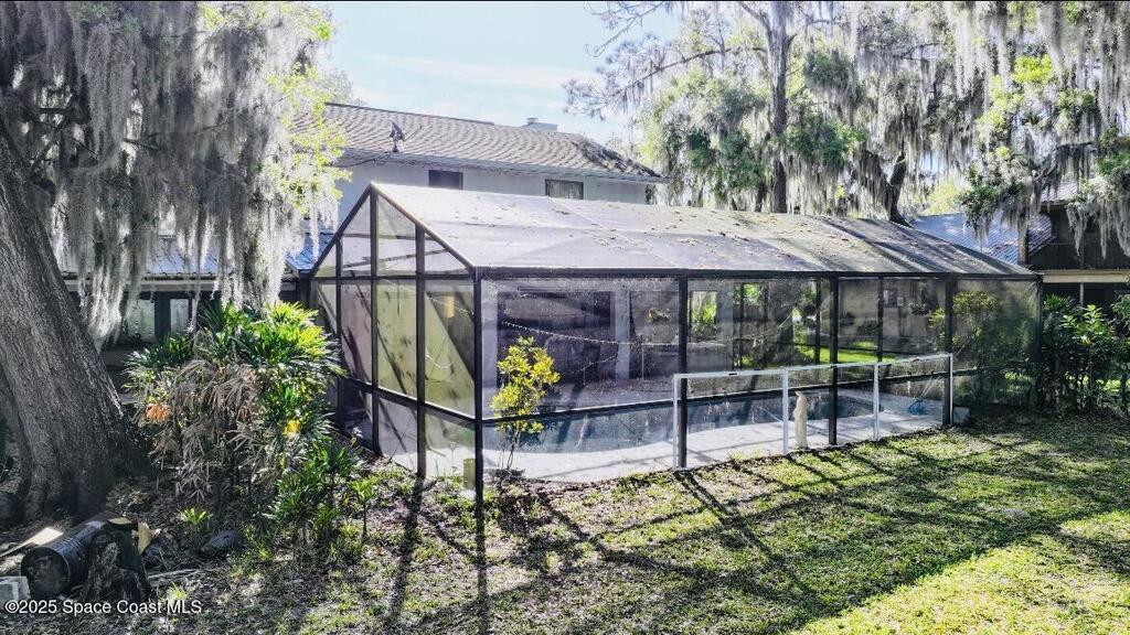 WELCOME to this gorgeous and serine lakefront property, located on South Lake in Titusville, FL. This 3.25 acre property is boasting of natural beauty, space, and luxurious amenities. With 4-bedrooms, 4-bathrooms, a wood burning fireplace, mother-in-law suite and a screened-in saltwater pool, the opportunities are endless for any size family. The property is being sold as-is and will need TLC and upgrades. This is a rare find and great deal, don't miss out!