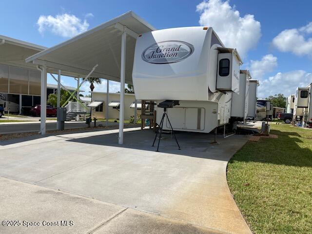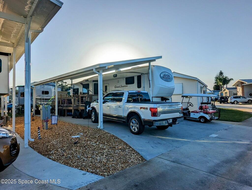 This property is in Phase One of the Willow Lakes RV and Golf Resort community. Any style RV can park on the pad and there is a covered patio area for entertaining and relaxing. You can begin your fulltime or seasonal resort style living here and watch rocket launches from your own property. Close to airports, beaches, theme parks, shopping and restaurants. Heated pool and executive golf course on property, with pickleball, tennis, clubhouse and more. Willow Lakes is an active 55+ community.