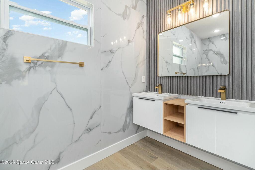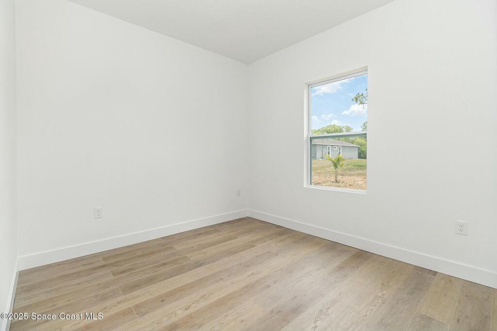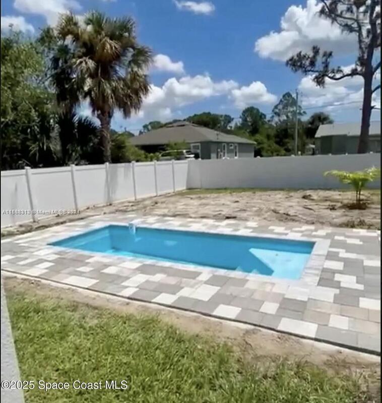 READY to move in! THE ONLY NEW CONSTRUCTION HOME IN PALM BAY WITH A PRIVATE POOL 16X9 FENCED backyard . Only 20 min from the beach, great for short term investment Home or primary residence w/HURRICANE IMPACT windows. Modern Design with massive open modern kitchen with gold quartz Countertops with Gold fixtures w/ample storage, walk-in pantry, stain steel appliances & oversized center island w/waterfall Double white quartz counter! The sizable master suite is marked w/a large walk-in closet, double sinks & huge walk-in shower. All bathrooms feature white vanities w/ upgraded quartz counters & marble shower/tub area. This HOME WILL BE PERFECT FOR YOUR BEACH VACATION HOME OR YOUR 1ST HOME.