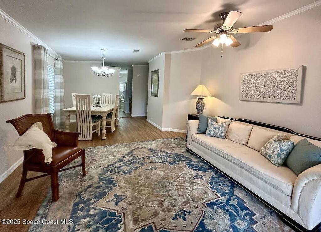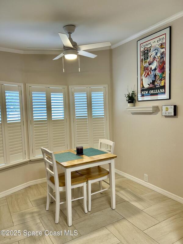 SELLER WILL PAY UP TO $5,000 IN BUYER'S CLOSING COSTS!Own your own land in the very active 55+ community. Lovely well-maintained 2 Br/2Bath home, newly painted interior, crown molding and plantation shutters throughout. NO popcorn ceilings! Updated kitchen with new hardwood cabinets, Formica countertops, pullout cabinet organizers and upgraded kitchen sink & faucet. Fully insulated storage/laundry room with Stack Washer/Dryer set. New energy saving insulated foam membrane roof in October 2024, new A/C 2017. Low HOA Fees which include your Cable TV, Internet, ground maintenance, pet control and security. Lakeside Community Clubhouse features heated pool & spa, barbecue, shuffleboard, Pickleball, pool tables and fitness center. On-site RV/Boat storage area available. Great location with easy access to I95, Beaches, Orlando, Port Canaveral and Kennedy Space Center.