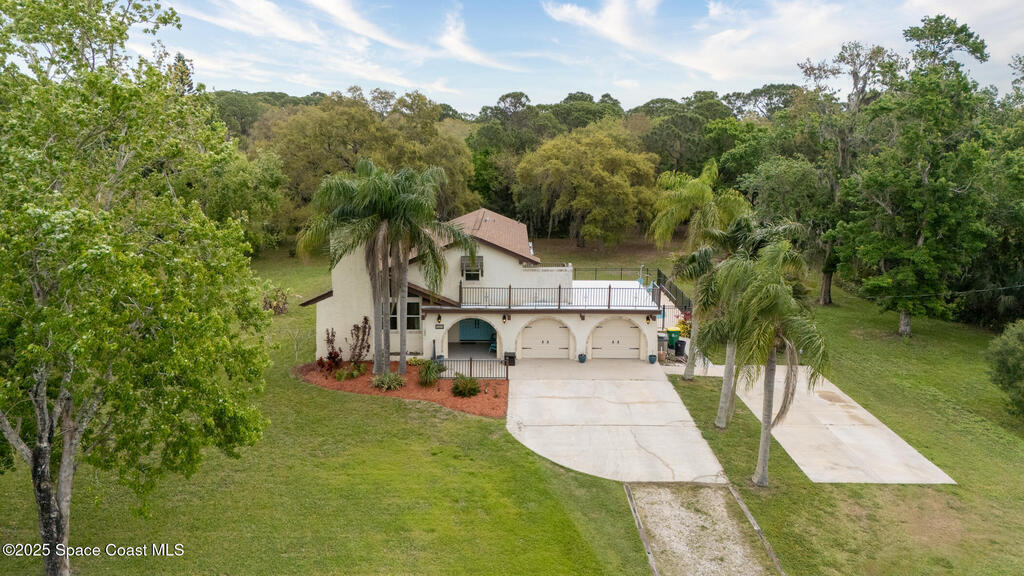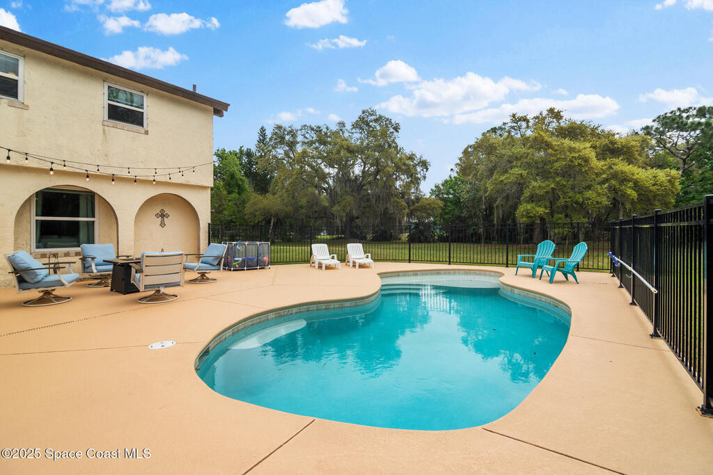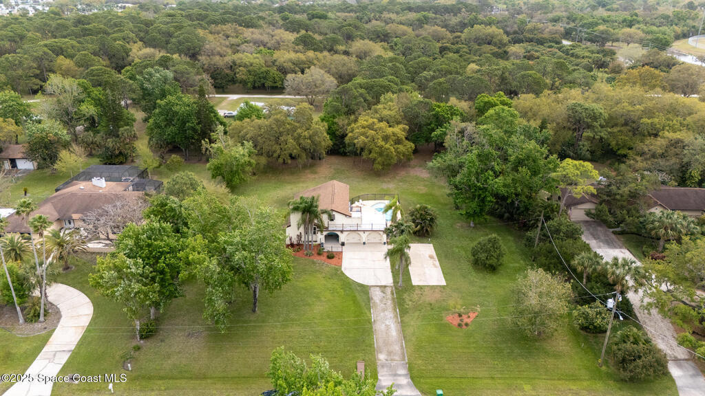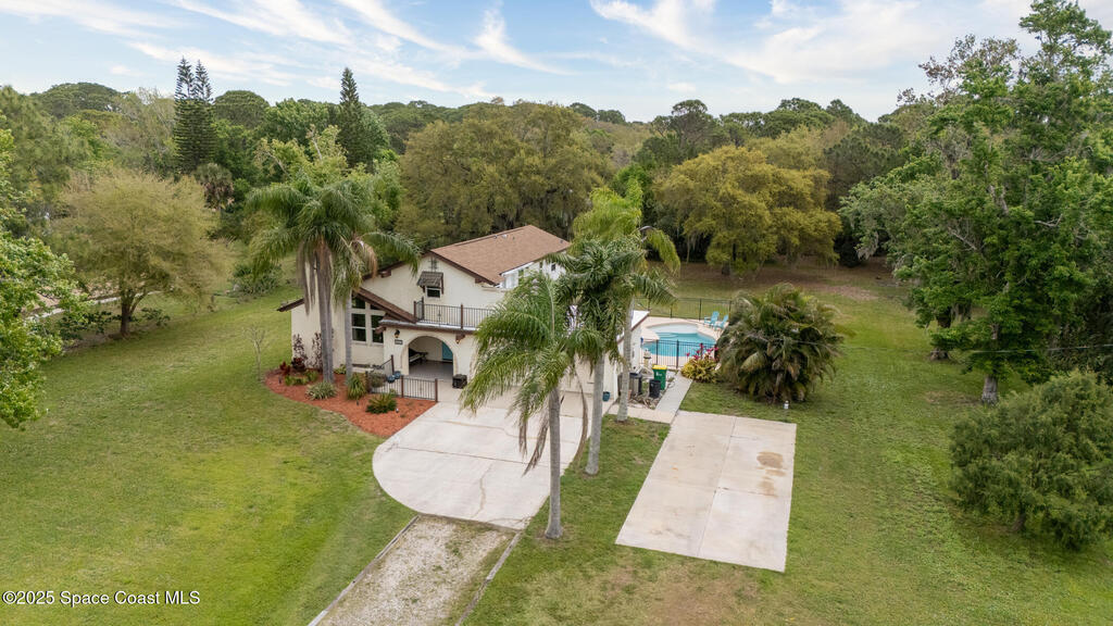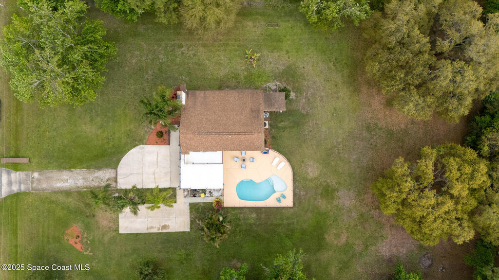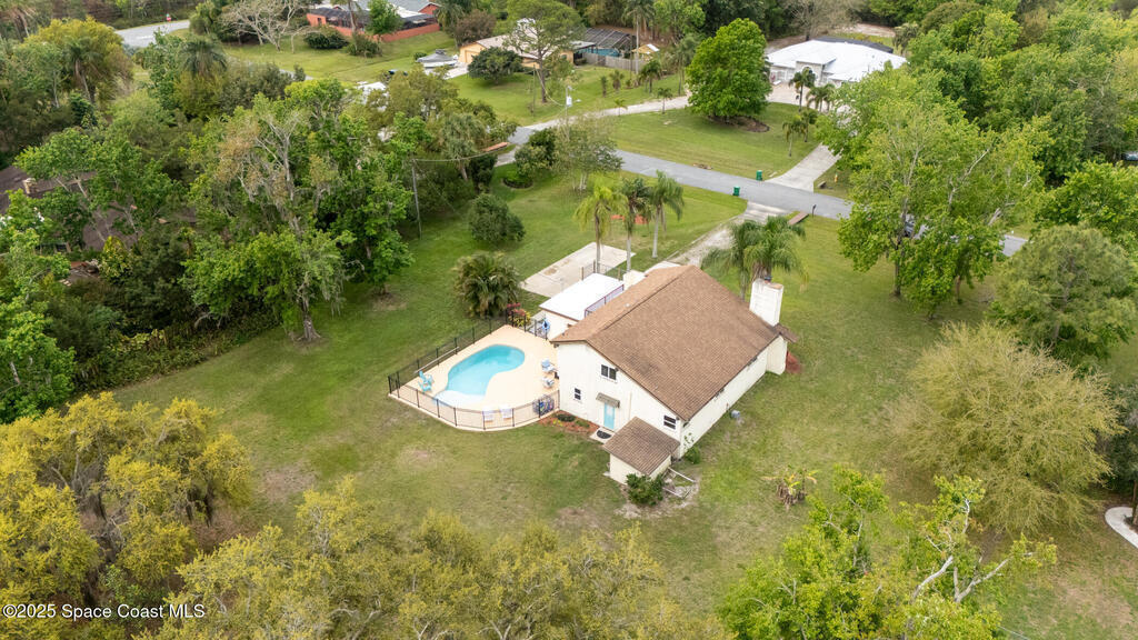 This exquisite single-family residence offers 3 spacious bedrooms, 2.5 well-appointed bathrooms, & a 2-car garage. Step outside to your private oasis, where an inviting in-ground heated pool w/jets provides the perfect setting for relaxation & entertainment. The chef-inspired kitchen features elegant granite countertops & sleek stainless steel appliances, making cooking a pleasure. The property is a true retreat w/ an RV pad equipped w/ 50-amp electrical service, mature trees that offer natural beauty & shade, & a handy storage shed for all your outdoor essentials. Inside, you'll enjoy the comfort of new carpet & the peace of mind that comes with a newer roof, installed in 2020. Conveniently located just 10 minutes from the Kennedy Space Center & Blue Origin, this home is also within walking distance to a park, walking paths, a playground, & tennis courts, providing a perfect blend of tranquility & recreational opportunities.This is an incredible opportunity to own a slice of paradise