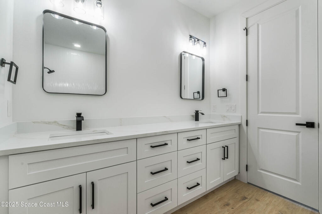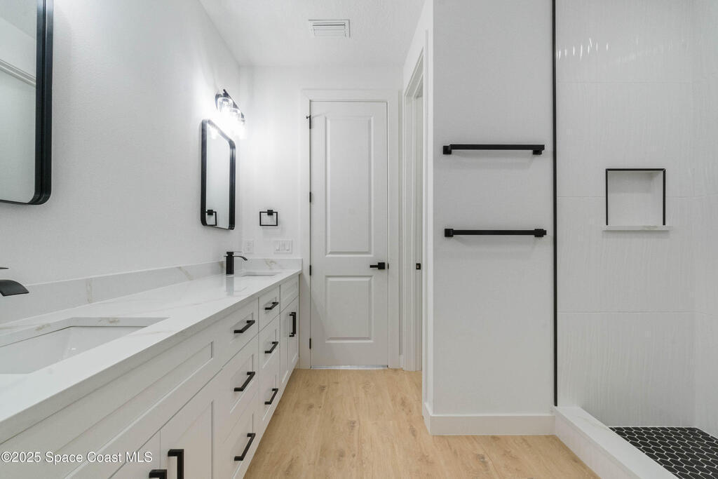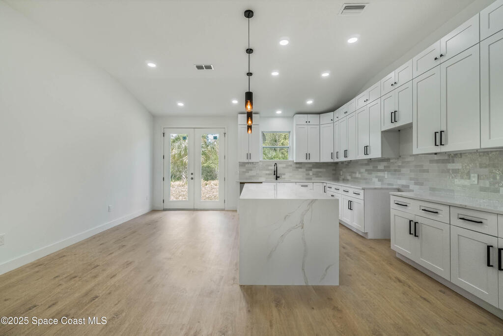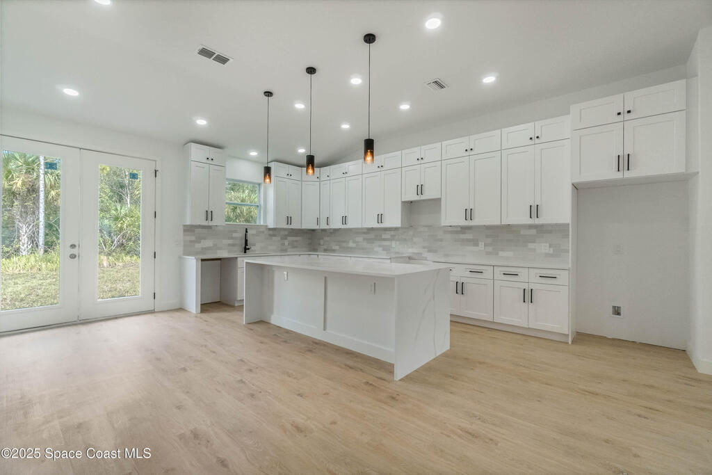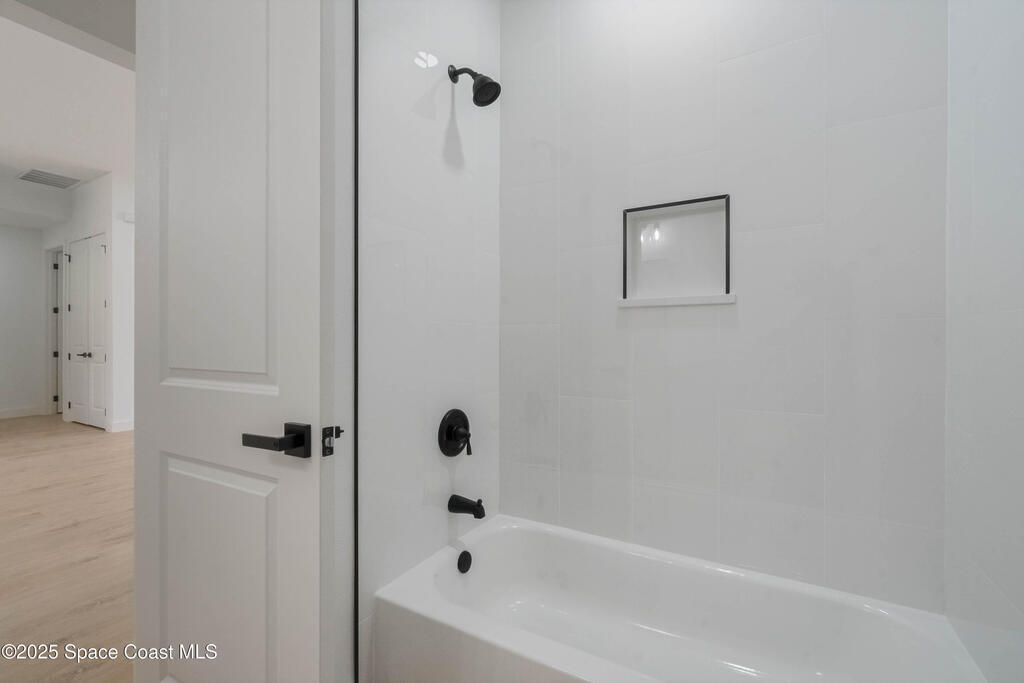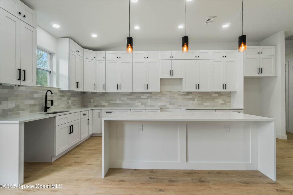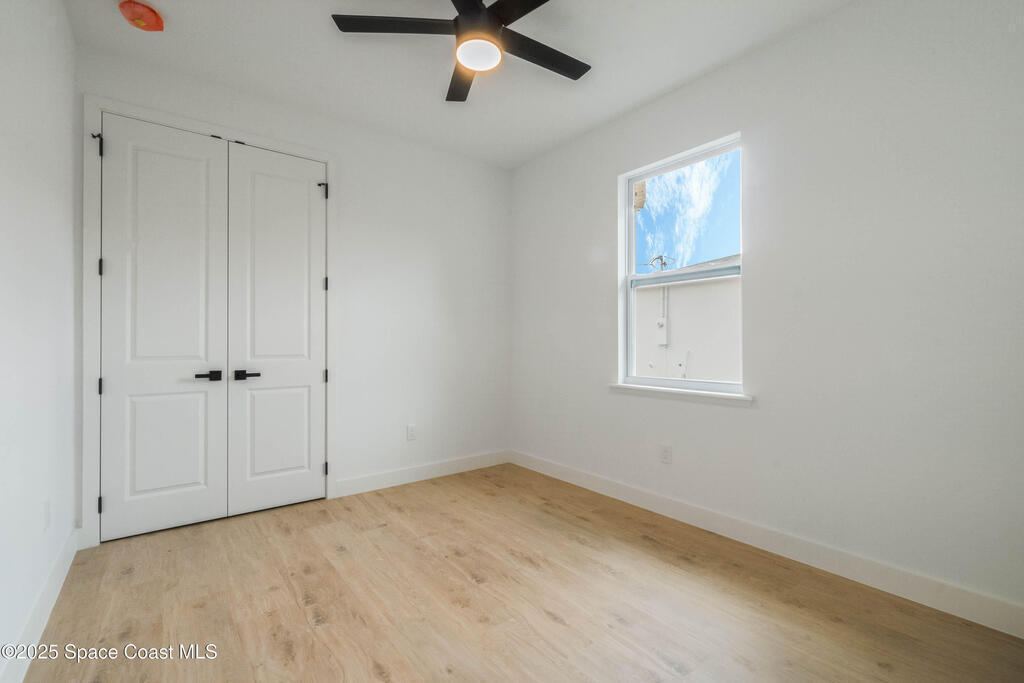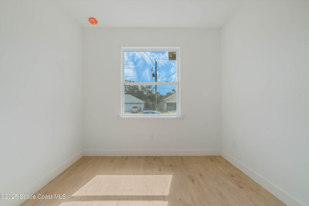This new 4-bedroom, 2-bathroom home in Palm Bay, Florida, offers 1,800 square feet of modern comfort. The open-concept layout features a spacious kitchen with quartz countertops, floor-to-ceiling cabinets, and a large island. Rustic wood-finish beams add warmth to the inviting living area. The split floor plan ensures privacy, and the two-car garage provides ample storage. Enjoy the benefits of new construction--roof, HVAC, plumbing, and electrical--built for efficiency. Located in a quiet, HOA-free neighborhood, it's minutes from shopping, dining, beaches, and major highways.