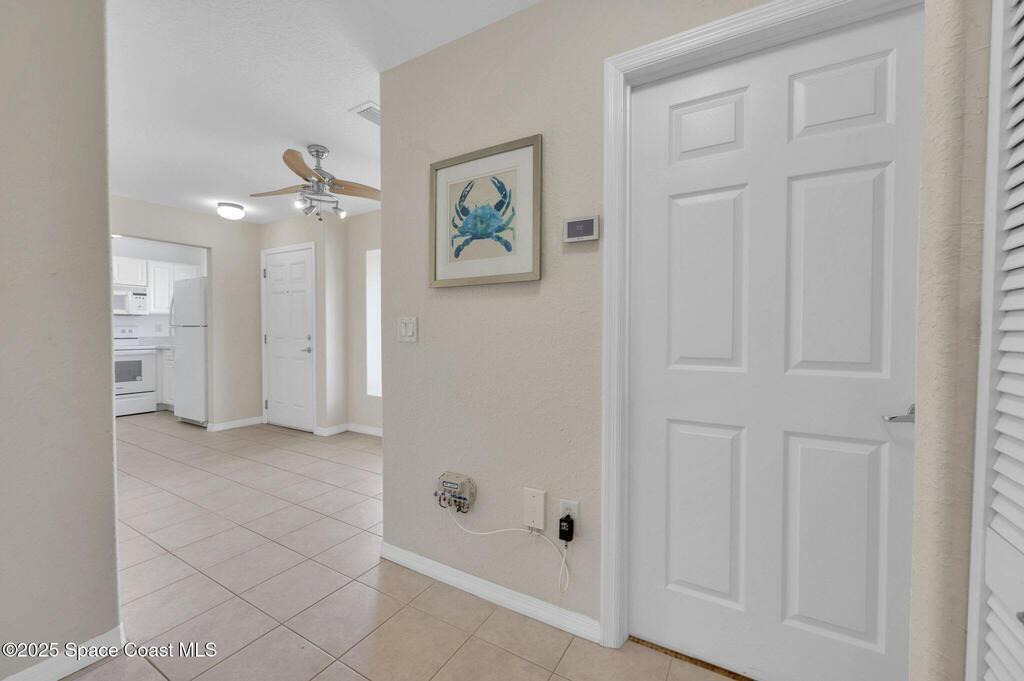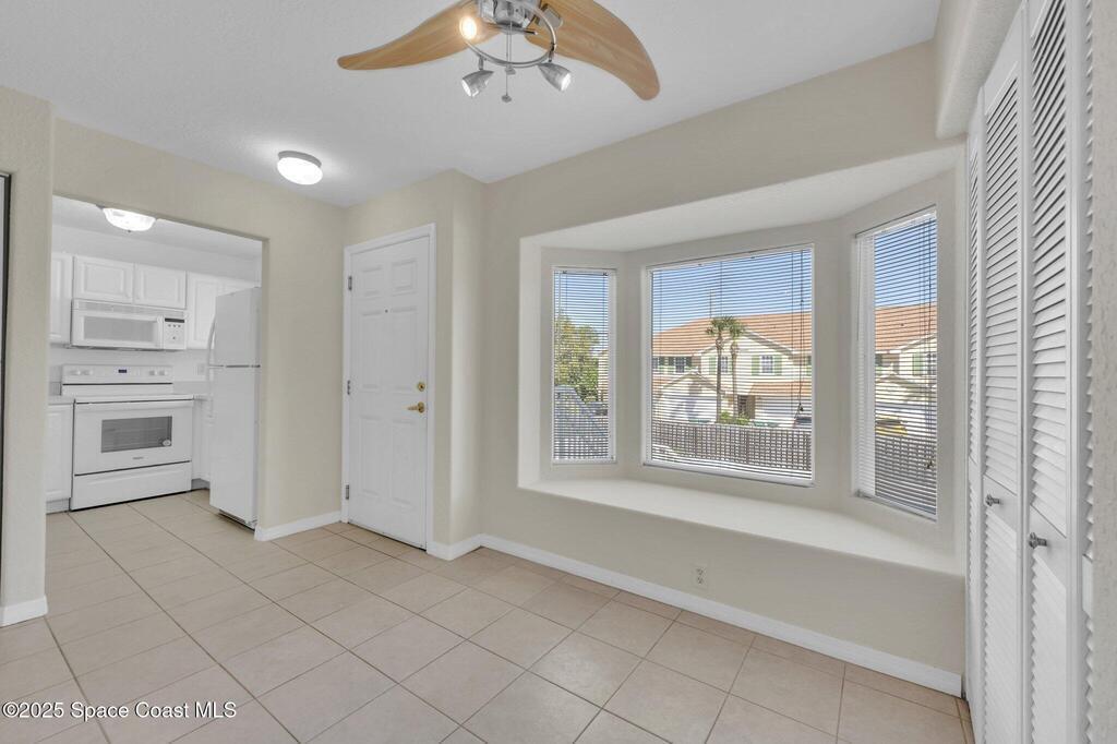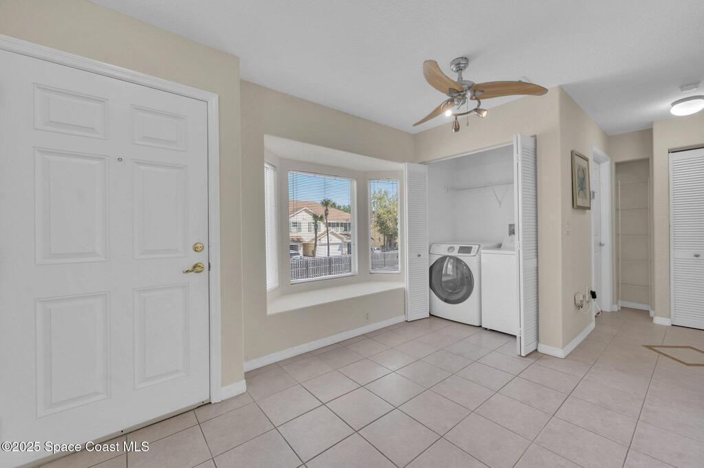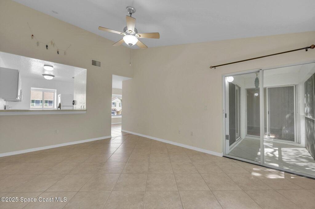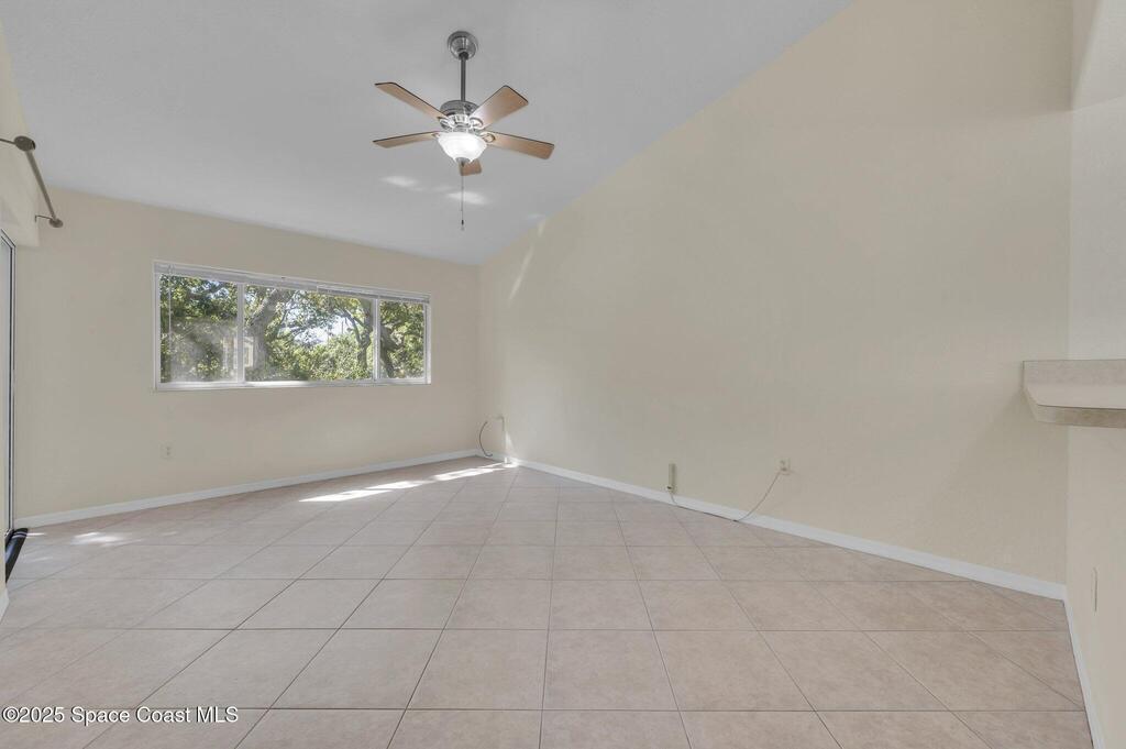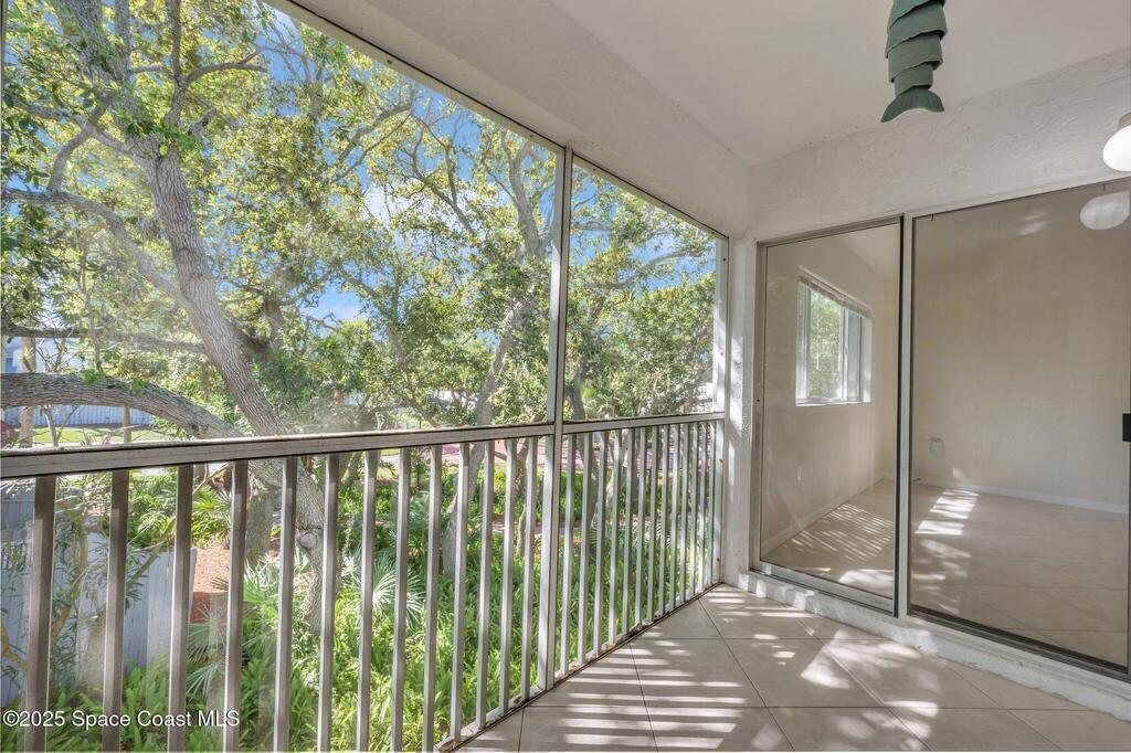 Experience resort-style living at Villages of Seaport! This inviting 2-Bed, 2- Bath second-floor condo features vaulted ceilings, and open living with sliders leading to a screened balcony with serene wooded views. The light-filled kitchen includes a charming garden window, while the dining area's cozy bay window creates the perfect spot to unwind after a day at the beach. Enjoy easy maintenance with no carpet or popcorn ceilings, plus a new washer and dryer for added convenience. Both bedrooms offer direct access to the balcony, enhancing the indoor-outdoor coastal feel. Enjoy unmatched amenities, including three pools (two heated), tennis & pickleball courts, racquetball, shuffleboard, fitness center, and clubhouse with an ocean-view sun deck for watching waves or rocket launches. Perfect as a primary residence, beach retreat, or investment. Unbeatable location is just minutes from Port Canaveral dining and cruising, with easy access to Kennedy Space Center and Orlando attractions.