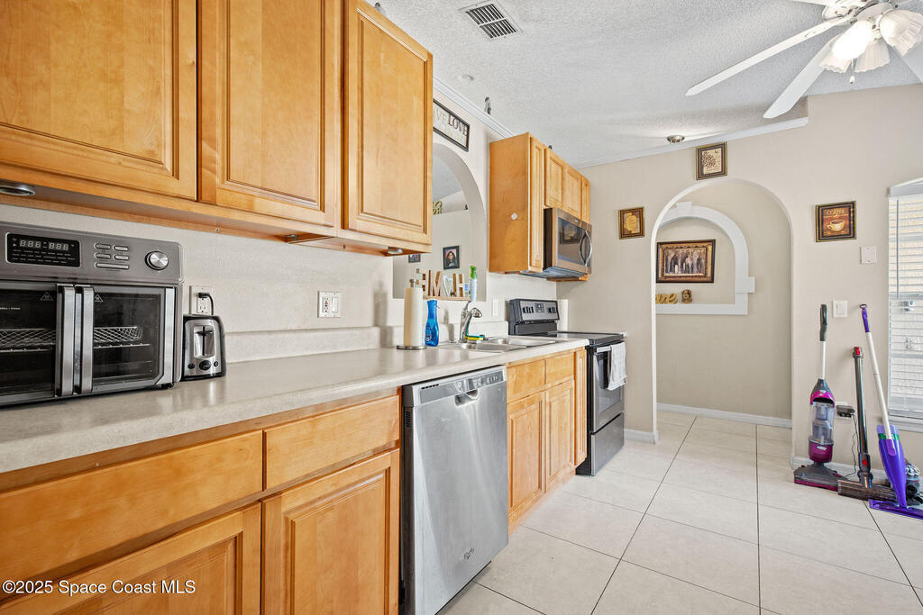 Welcome to 2977 Sebastian Lane in Melbourne--a home that just feels easy the moment you pull in. This move-in-ready 3-bedroom, 2-bath offers 1,264 square feet of bright, comfortable living space right in the heart of central Melbourne, close to the shopping, dining, parks, and schools you use every day. Inside, the split floor plan gives everyone their own space--perfect for families, guests, or a dedicated home office. Vaulted ceilings and an open layout bring in natural light and make the main living areas feel larger than you'd expect. Durable tile flooring keeps maintenance simple, so you can spend more time enjoying your home and less time worrying about upkeep. The kitchen offers generous counter space for cooking, gathering, and everyday conversations. Recent exterior updates--including a newer roof, fresh paint, and stucco refinishing completed in 2022--add real peace of mind. Out back, the fully fenced yard is ready for pets, weekend BBQs, or quiet evenings out back.