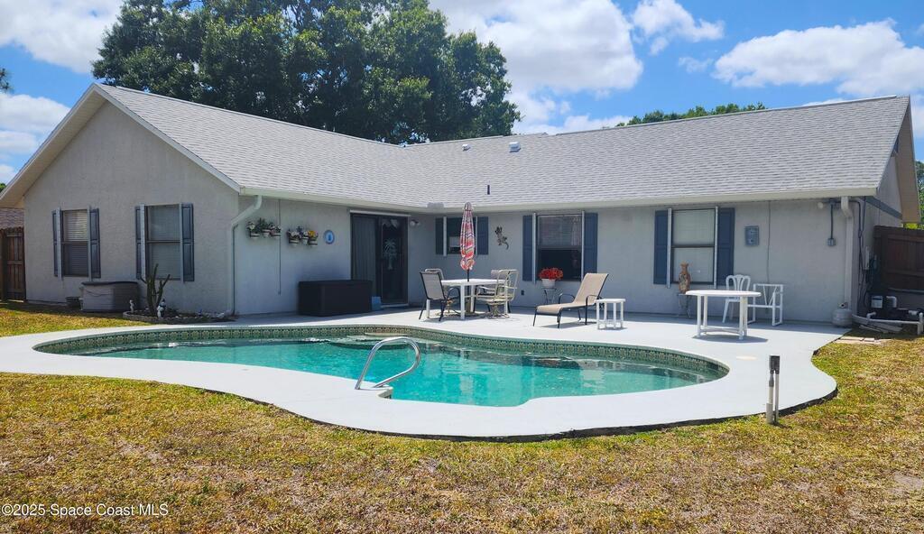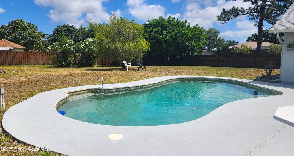 Fantastic price for a 3 Bedroom, 2 Bath Pool home with a spacious floor plan. Huge fenced in back yard. Roof 9/2024, New Dishwasher 4/24, AC 3 years old. Living room, Dining room, eat in kitchen and family room. Hurricane Panels. Price has been lowered! Great price for a pool home!