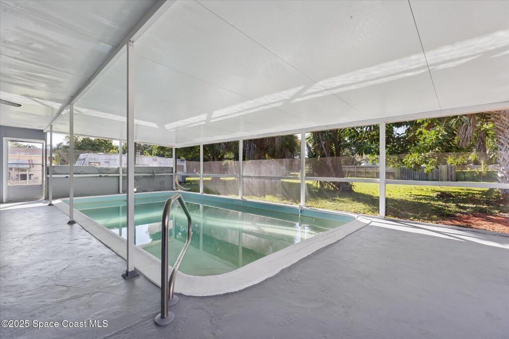 There is so much potential in this 3 bedroom 2 bath indoor inground pool with a 1 car garage. A very large indoor pool to do laps in.. The backyard is oversized. ROOF REPLACED IN 2021, NEW Air conditioner Come and put your personal touches on this home. This is a great investment opportunity. Near colleges, 15 minutes from the beach and plenty of shops.