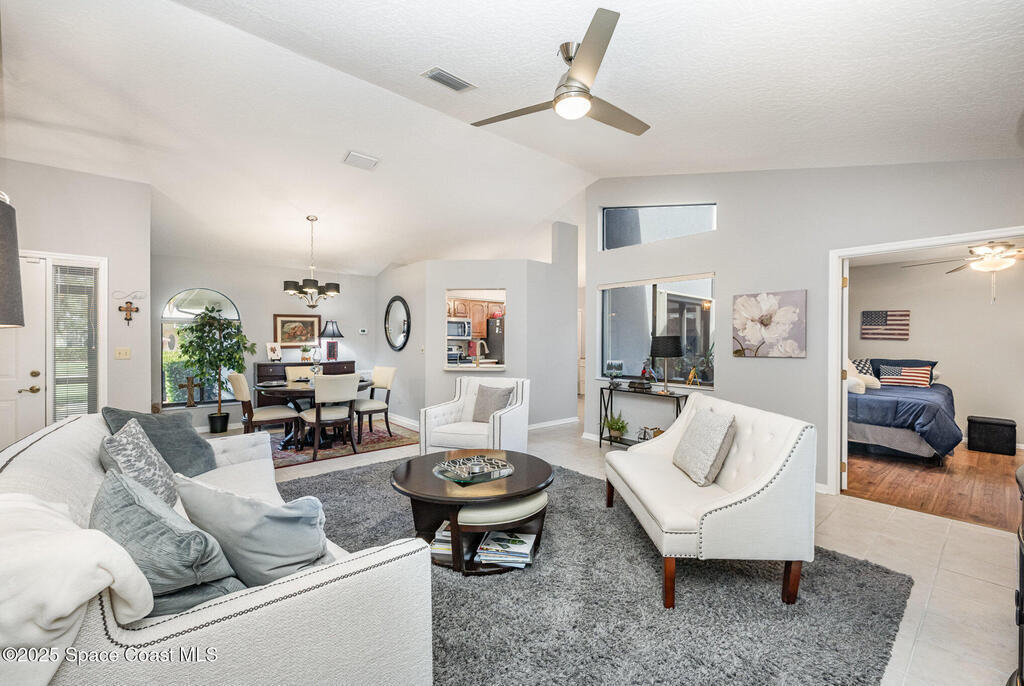 Just Reduced! Motivated Seller -- best value in sought after community in Indian River Colony Club. This charming expanded Madison model is move in ready and located in a resort-style country club community. Home boasts vaulted ceilings, bright open floor plan, roomy primary bedroom and secondary bedrooms. Primary bedroom includes two walk in closets, water closet, dual sinks, garden tub and shower, plus pocket doors accessing a functional Florida room. Kitchen maximizes space with additional built-in cabinetry with a butcher block top, stainless steel appliances, wood cabinets and solid surface countertops. Home includes an open air atrium, great for combining open space, natural light & the potential for a unique & inviting garden, or space for relaxation. Spacious paver lanai, perfectly designed for both everyday relaxation and effortless entertaining. Plenty of room to create an outdoor kitchen, dining set, and lounge area makes this lanai a true extension of your living space.