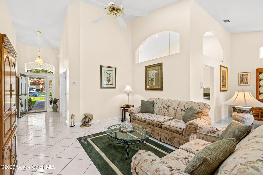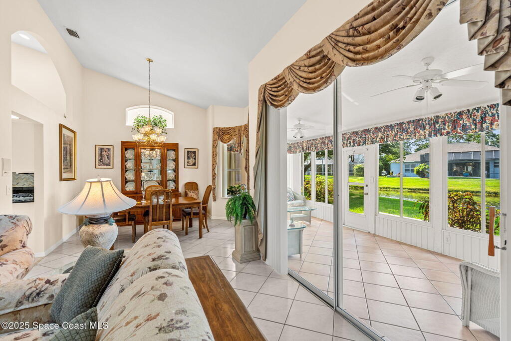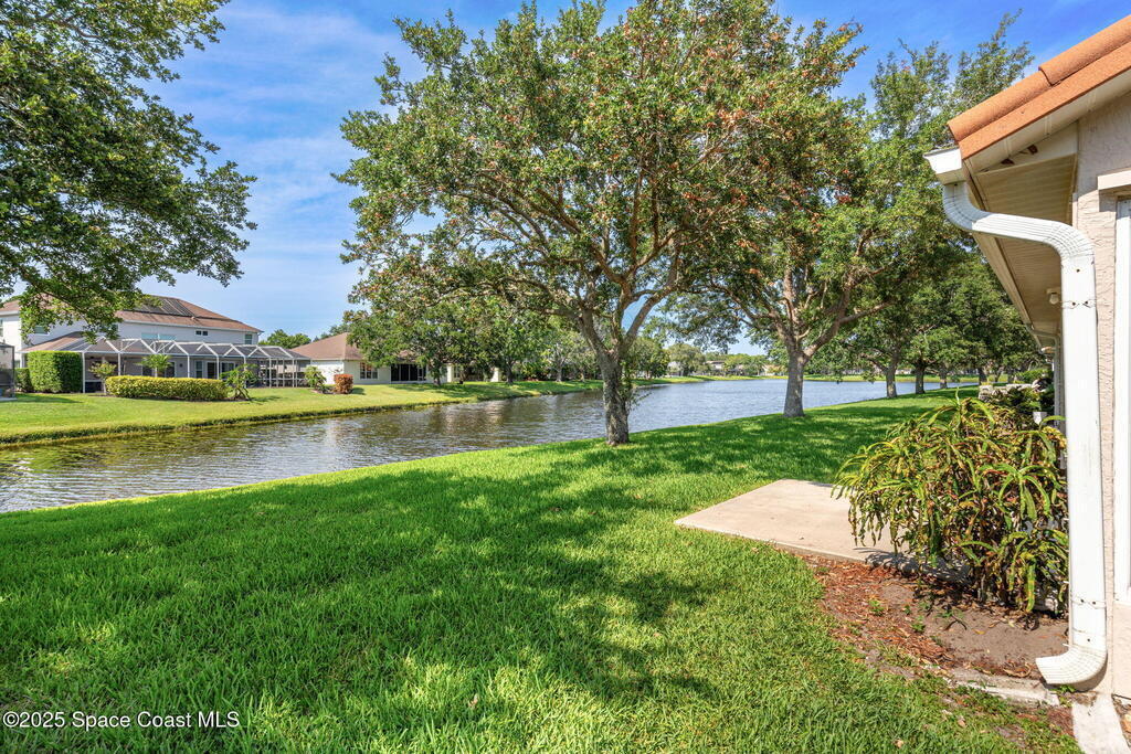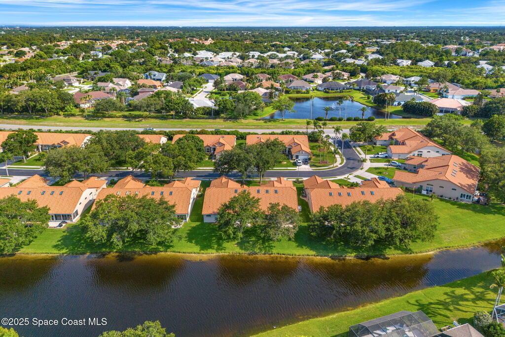 Welcome to tropical living in the heart of Suntree! Located in the gated Emerald Pointe community, this charming three-bedroom, two-bath duplex blends comfort, style, and Florida flair. You'll love the attractive landscaping and two-car garage, but it's what's inside that truly shines - vaulted ceilings with skylights bathe the home in natural light, highlighting tile, laminate, & carpet floors throughout. The spacious kitchen features generous counter & cabinet space with a stunning backsplash, a center island, and a cozy breakfast nook. Host dinners in the formal dining area with serene water views, or relax in the enclosed Florida room with ducted air and glass windows - perfect for year-round enjoyment. The primary suite offers a walk-in shower, garden tub, and ample space to unwind. A whole-home gas generator ensures peace of mind. Enjoy beautiful water views from multiple rooms & peaceful moments by the water's edge. Complete with a community pool, your tropical retreat awaits!