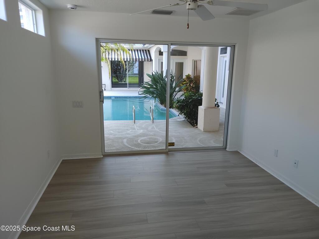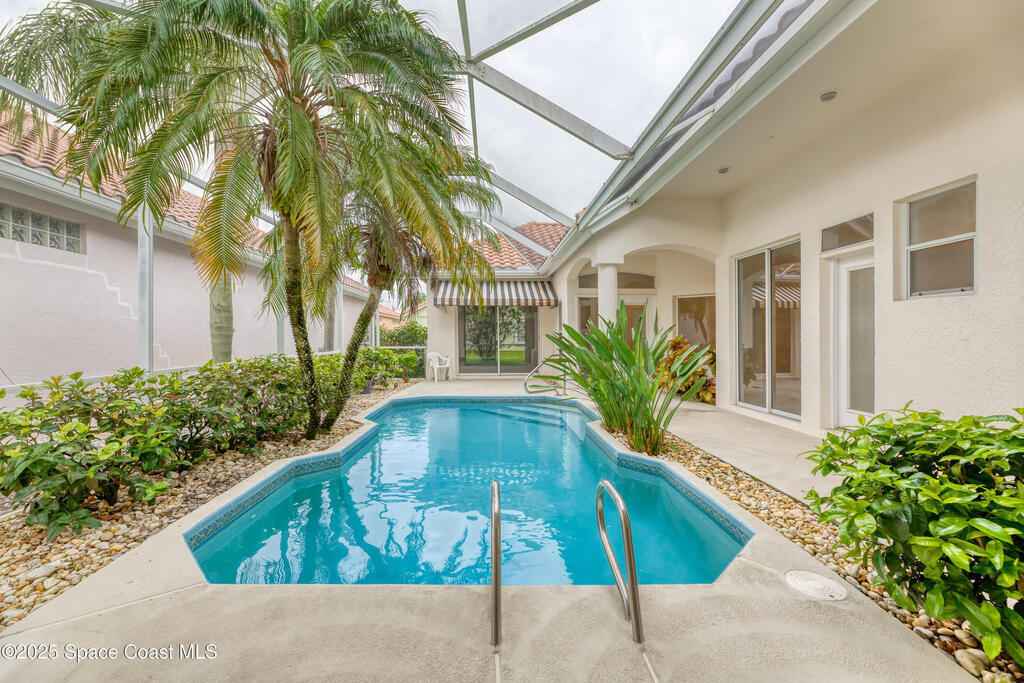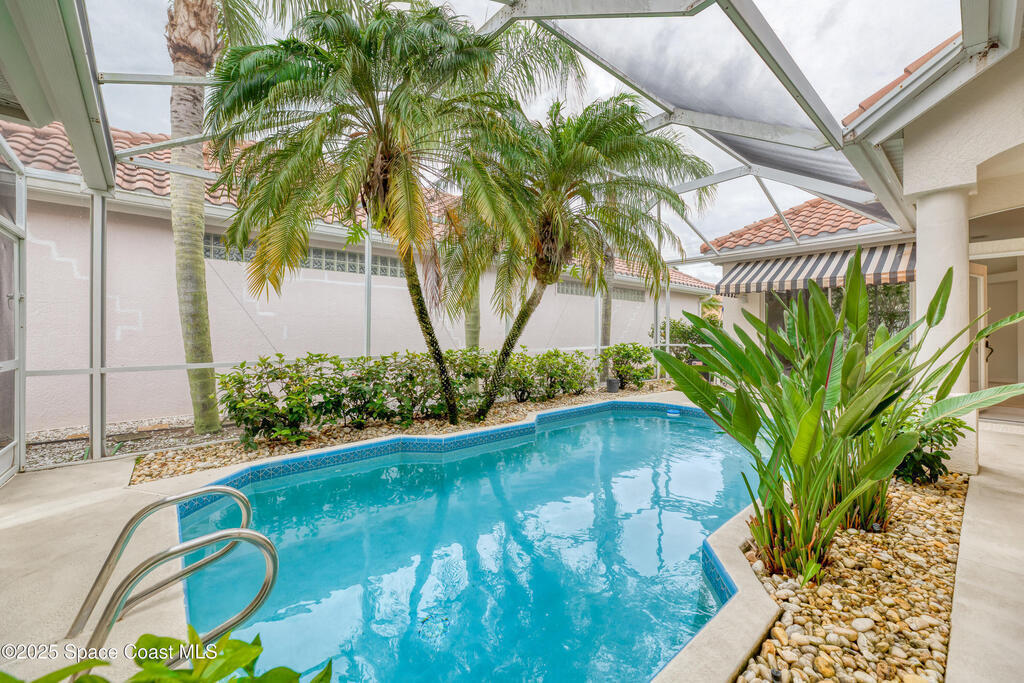 Back on the Market - Buyer Financing fell through!Nestled in a peaceful cul-de-sac of Mission Lake Villas of Suntree, this beautiful courtyard pool home with nearly 2000 sqft of living space offers the perfect blend of style, convenience, and Florida living.Step inside to brand new luxury vinyl plank flooring throughout. The pool is surrounded by lush tropical foliage creating a private oasis ideal for relaxing or entertaining.The spacious owner's suite includes an oversized walk in closet and newly tiled screened in porch, your own tranquil retreat for morning coffee or quiet evenings. Recent updates include 2024 A/C and 2025 new well to keep the landscaping thriving.Enjoy low maintenance living with HOA fees that include lawncare, exterior painting, and roof cleaning. If you're looking for a serene home with modern updates, privacy, and resort-style outdoor living, you've found it in this hidden gem.
