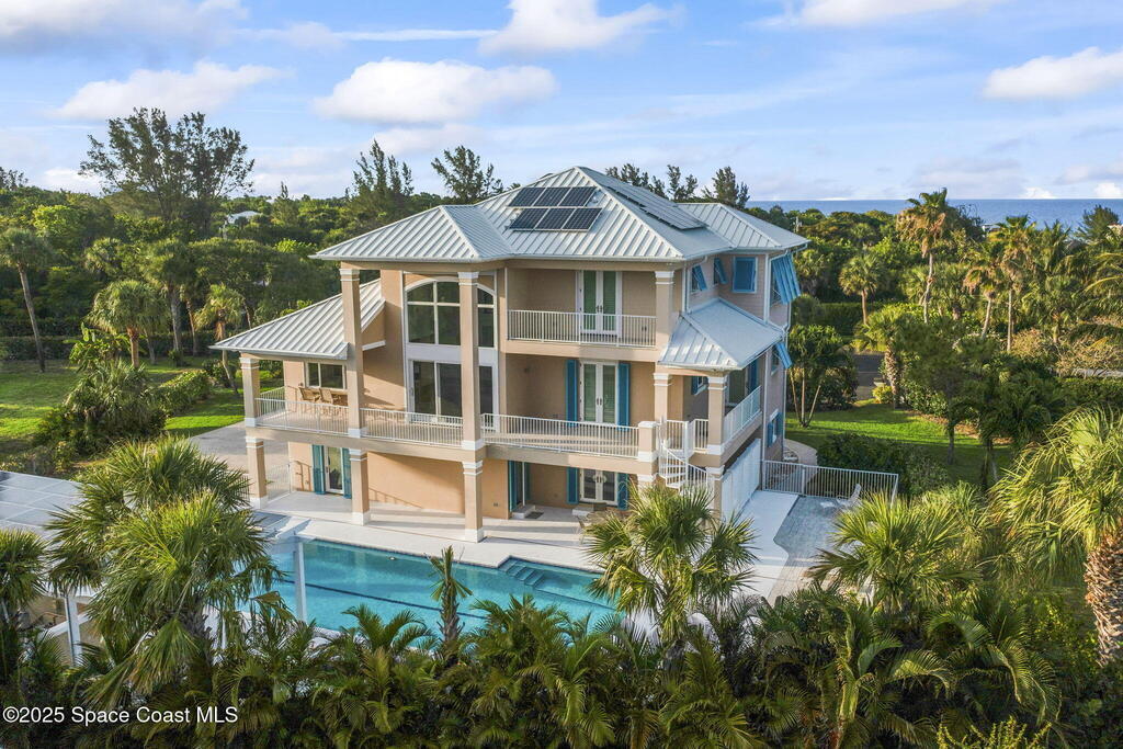 If you love a beautiful beach and a tranquil lifestyle then this house is for you. What's better than location, location, location? How about added privacy, provided by an abundance of lush native tropical plantings in a quiet, exclusive neighborhood, built to the highest structural and energy efficient standards offering myriad amenities including a 3 car garage, a 2 lane (20'x60') lap pool and a hot tub. This spectacular home is just a short walk, via a Canopied Trail, to the expansive, accreting beach and just minutes, by car, to the town centers of Vero Beach and Fort Pierce. Interior features include a very spacious kitchen with Thermador microwave, refrigerator, 6 burner gas stove with griddle and electric oven and a pass thru window for serving to the Granite Bar on the Covered Porch which provides the perfect flow for enjoying Al Fresco Dining and Entertaining Family and Friends. There are 4 bedrooms and 3 baths on the 3 floors surrounded by expansive decks. The Master