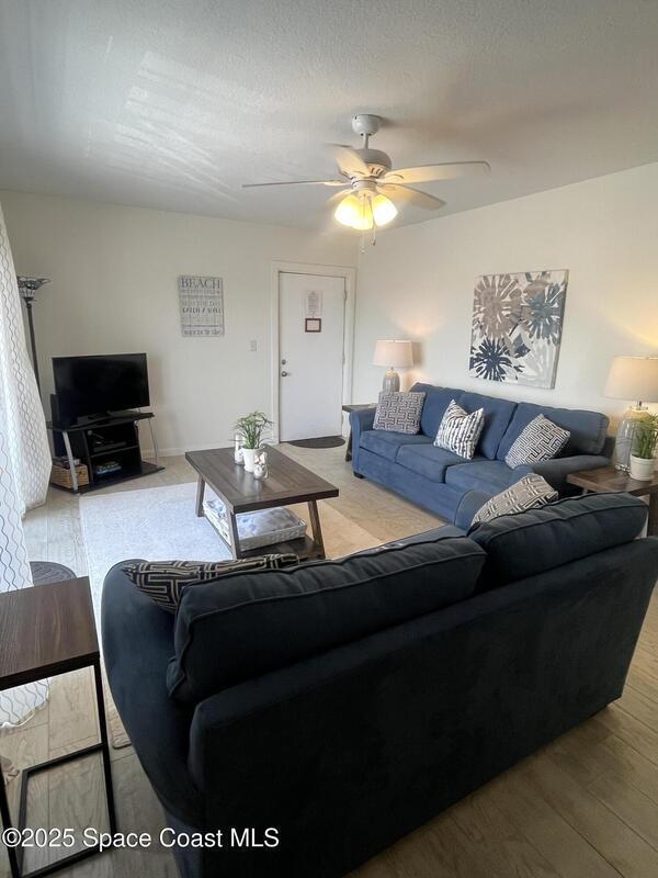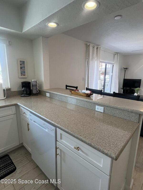 Oceanfront Building, Corner Unit w/ private balcony! - Weekly & Monthly Rentals Allowed! Discover this hidden gem nestled directly on the sands of Cocoa Beach. This rare corner unit offers a private balcony off the living room, perfect for relaxing and enjoying the ocean breeze. Turn key w/ all furnishings. Featuring a light and bright interior, tile throughout, updated kitchen w/ quartz countertops, this unit sleeps six comfortably and comes equipped with accordion hurricane shutters on both the sliding glass door and kitchen window for added peace of mind. The monthly fee includes all utilities (including A/C via chiller system), A/C maintenance, exterior doors/windows, hurricane shutters, building insurance, and on-site management with a live-in manager. Located just minutes from Patrick Space Force Base, Port Canaveral (cruise terminals), Kennedy Space Center, and Cape Canaveral Space Force Station. This is a perfect beachside retreat or high-performing rental property