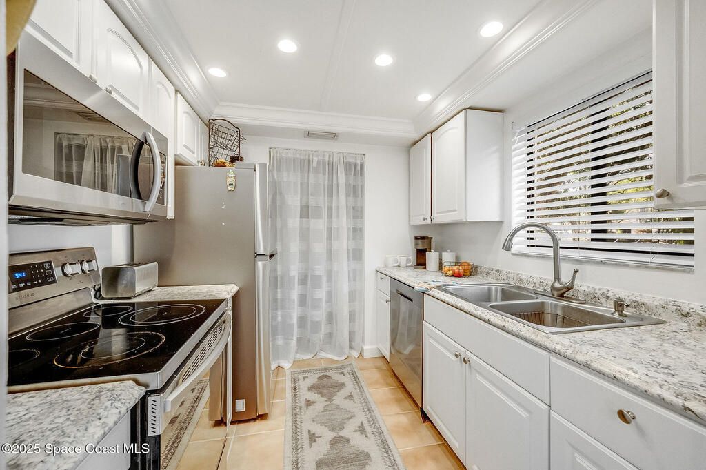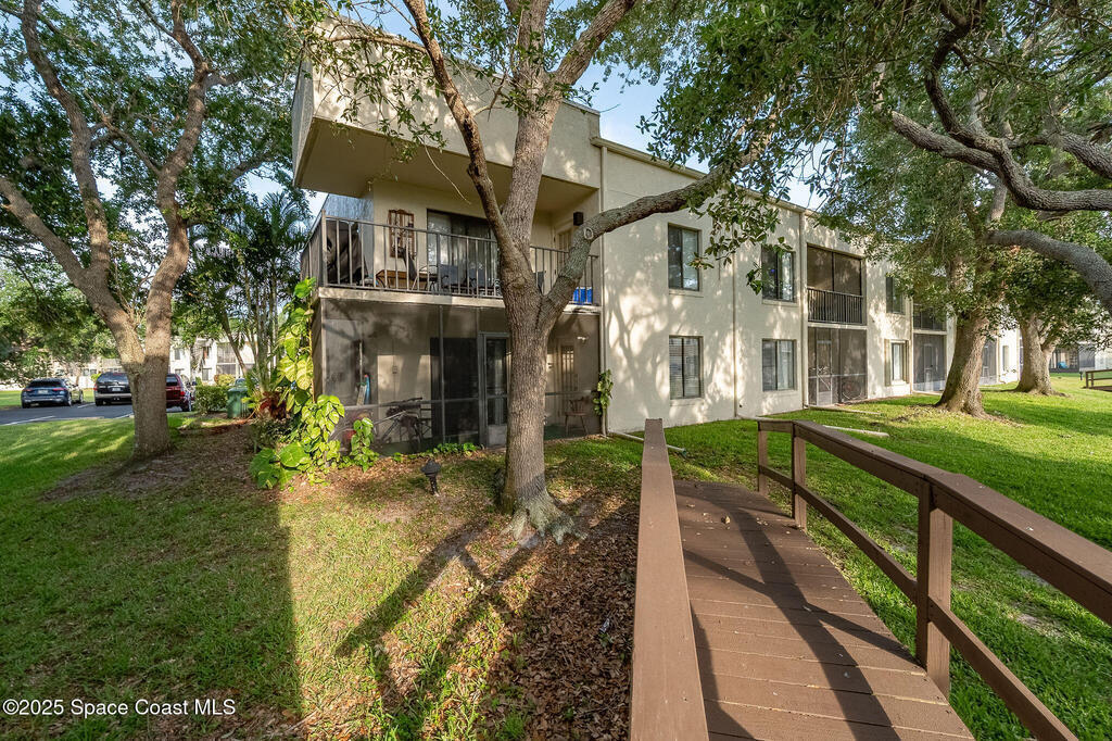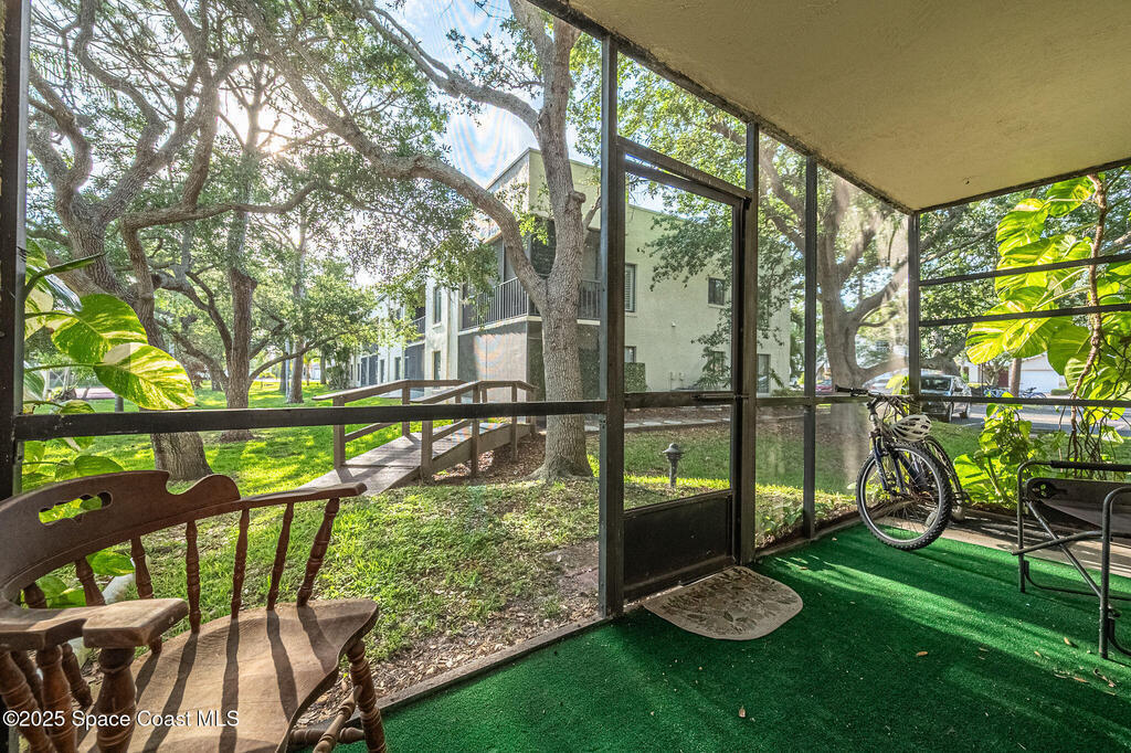Welcome to your tropical retreat in the heart of Cape Canaveral! 🌴 Brand New AC installed and new patio door installed! This corner unit in the desirable Canaveral Bay community offers privacy, serenity, and unbeatable views. Nestled beneath majestic oak canopies, the side yard creates a shaded, peaceful atmosphere, while the screened-in porch provides the perfect vantage point to enjoy views of the sparkling community pool. Inside, you'll find tile flooring throughout the open-concept living space, a clean and updated kitchen, and two spacious bedrooms--both with direct access to the porch. Whether you're looking for a beachside getaway or a low-maintenance full-time residence, this charming, furnished condo checks all the boxes.