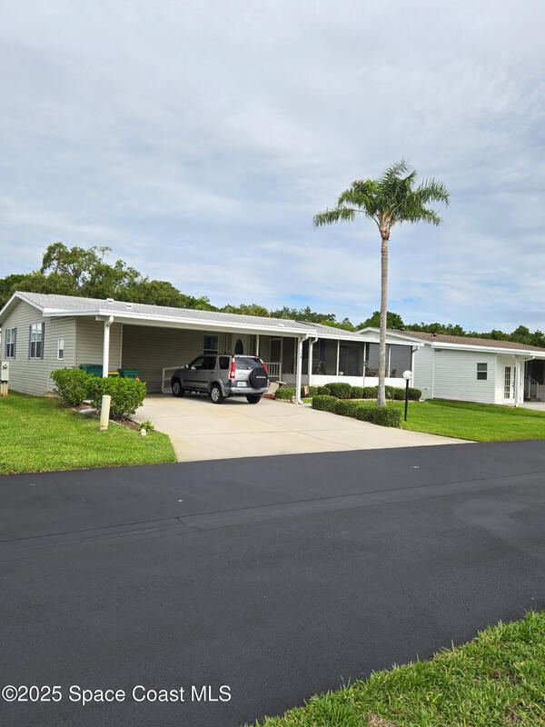 You will love this community of manufacturedhomes for seniors where you OWN THE LAND!Hoa fees are low and cover cable,internet,and lawncare. This home has 3 bedrooms/2 baths,a handicapped entry if needed and a peek-a-boo view of the lake.Enjoy complimentary boat & R.V. parking ,activities when you wish ,pickle ball,shuffleboard,water arobics,dances,parties galore..Watch rocket launches from home since Nasa is close by as well as shopping,beaches and Cocoa Village.
