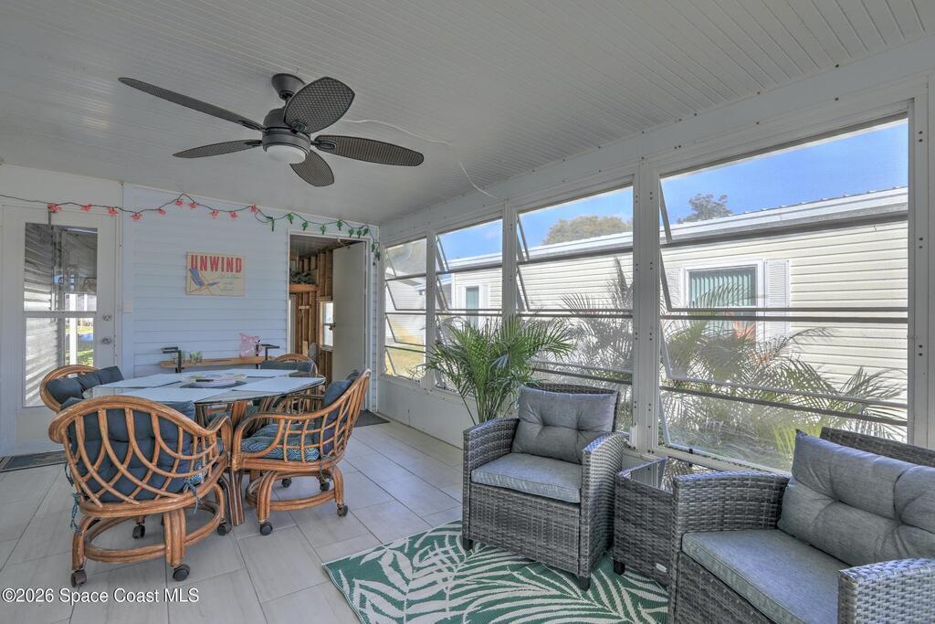 Turn the key, walk in, and set your toothbrush on the counter -- this beautiful TURN-KEY home is ready for you! Major updates provide peace of mind, including a 2018 metal roof, 2017 HVAC system, 2023 water heater, updated breaker panel and water lines, plus 2023 kitchen appliances. Enjoy everyday convenience with an indoor laundry room, a tiled lanai perfect for relaxing, and a workshop offering plenty of storage and organization space. Whether you're escaping the winter chill or settling into full-time retirement, this home delivers low-maintenance living in a welcoming, amenity-rich community.