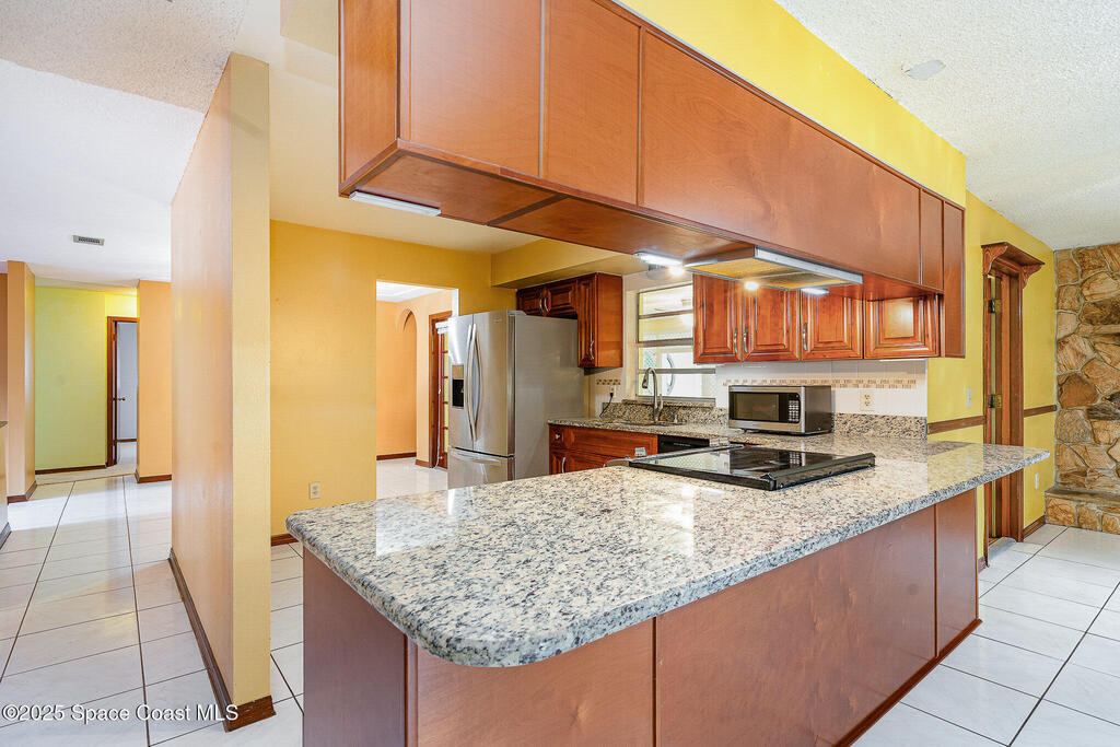 DRASTIC PRICE REDUCTION!! OWNER IS MOTIVATED, MAKE AN OFFER!! Nestled in one of Palm Bay's most sought-after neighborhoods, (LOCKMAR ESTATES), this residence sits on a generous .35-acre lot, offering both privacy and space. New carpet in all bedrooms; hardwood floors in the living area, and tile throughout all other rooms and wet zones--balancing comfort with functionality.The heart of the home opens to formal living and dining areas. The home's layout includes a dedicated family room for added flexibility with a cozy fireplace. An enclosed 14' x 24' bonus room overlooks a lush backyard brimming with mature, fruit-bearing tropical trees--ideal for hosting family gatherings. Ample hallway closets provide extra storage,Located on a tranquil street, this property is just minutes from shopping along Malabar Road and Palm Bay Road, with easy access to I-95 and only 20 minutes to the beach.Washer/Dryer/Dishwasher not warrantied.