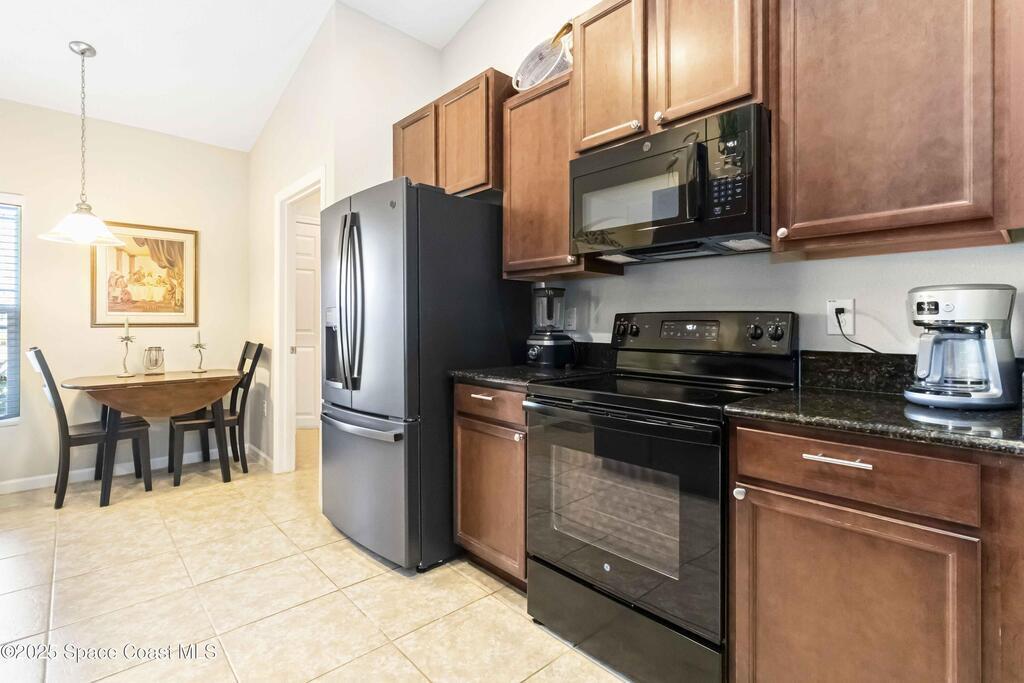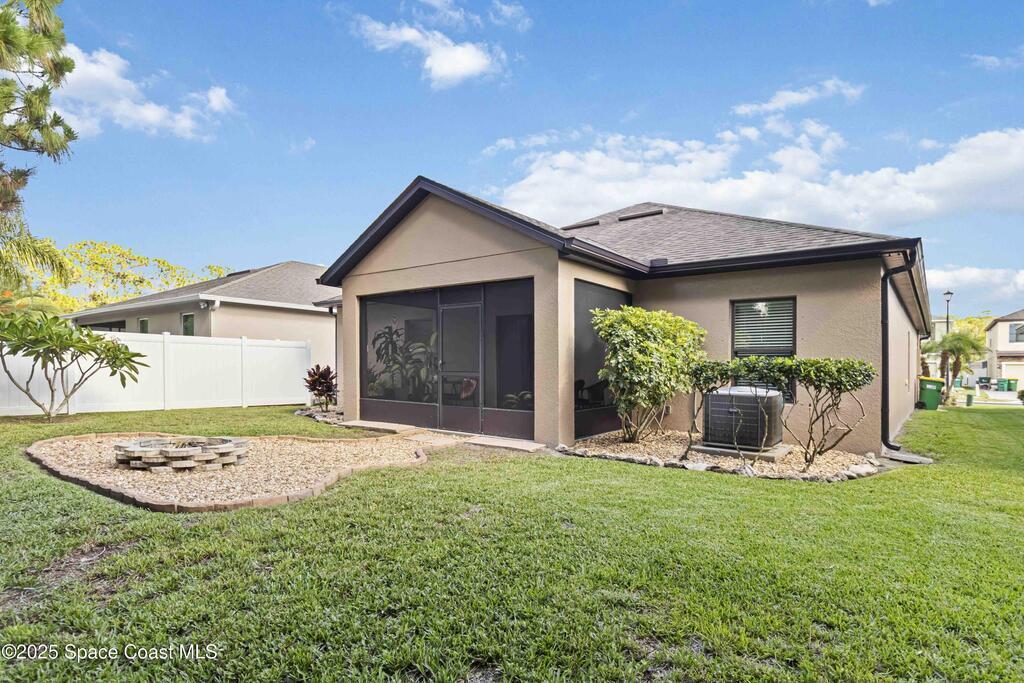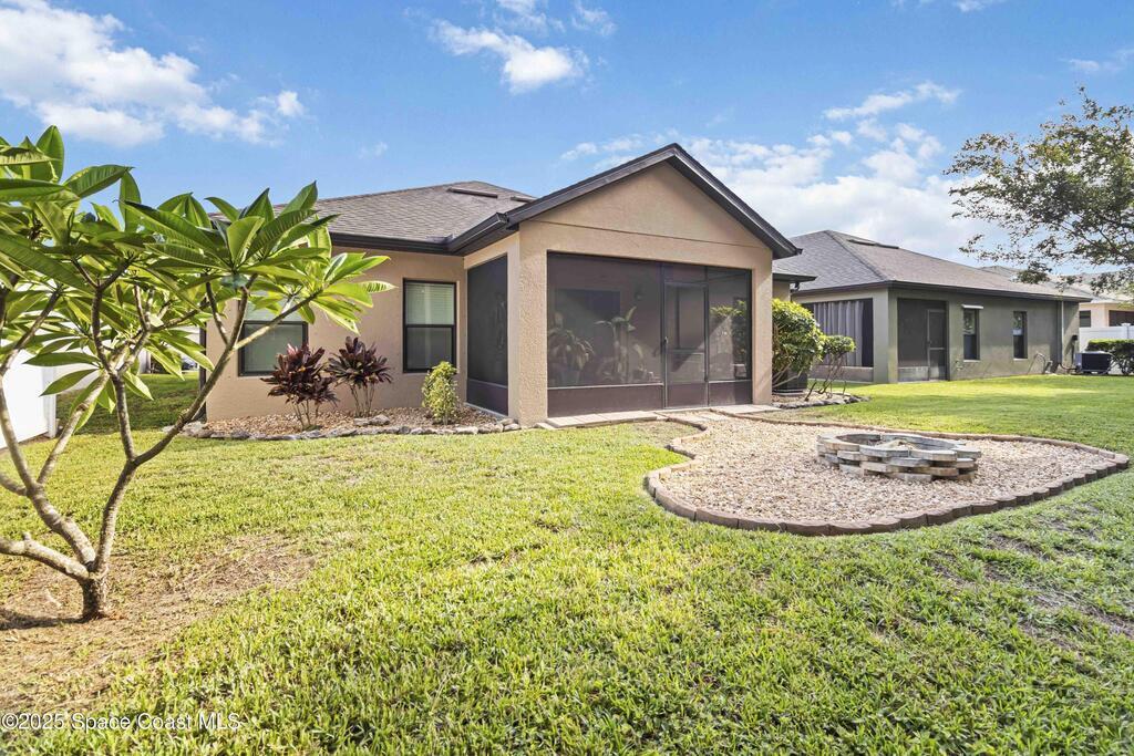 Beautiful 3-bedroom, 2-bath home located in the gated community of Emerald Lakes in Cocoa. The kitchen features granite countertops and brand-new appliances (2025), and opens to a spacious living area with vaulted ceilings and sliders for natural light. Ceramic tile in all wet areas, with cozy carpet in the remainder of the home. The generous owner's suite includes a large ensuite with dual sinks, a soaking tub, and a separate shower. Enjoy a private backyard with a fire pit, no rear neighbors, and tranquil views of the lake beyond the tree line. Roof, A/C, and water heater 2015. Fresh exterior paint May 2025. Community amenities include a playground, basketball court, and jogging trail.