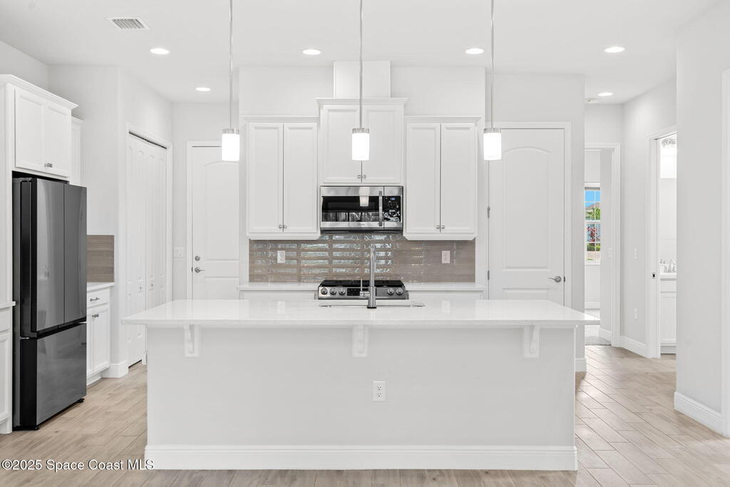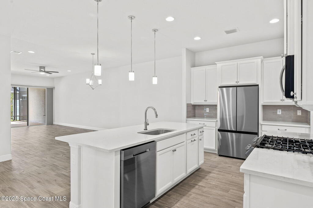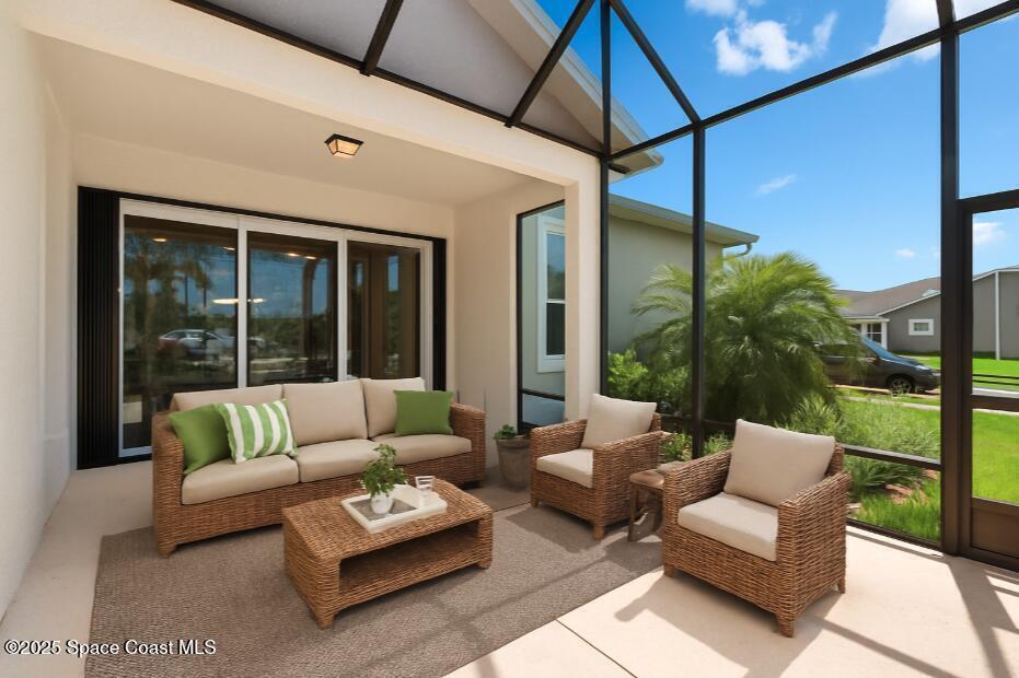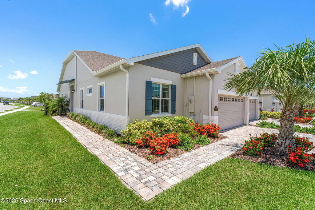 Built in 2023 & dialed in with fresh, modern finishes, this end unit in Central West Viera doesn't just look good--it lives smart. Wood-look tile adds warmth underfoot, while an open floorplan frames a quartz-wrapped kitchen with island seating & sleek lines from every angle. The extended screened patio is ready for breezy mornings or storm-ready evenings, thanks to a full hurricane accordion shutter for peace of mind. Inside, the split-bedroom layout keeps the primary suite feeling private, complete with a walk-in closet & streamlined shower. Extras like a utility sink in the laundry room, smart thermostat, smart doorbell, & a full security system with cameras layer in convenience, confidence, & control. And with Addison Village Club access--featuring two pools, pickleball, tennis, bocce, an event lawn, indoor basketball, & more--this home blends comfort, style, & community in all the right ways.