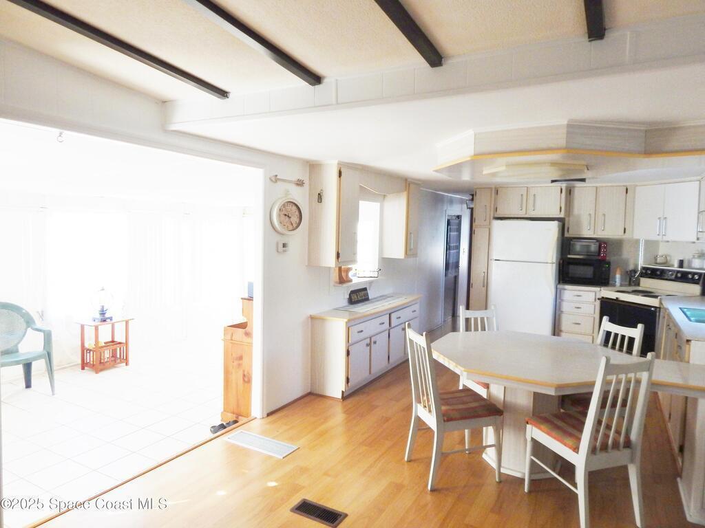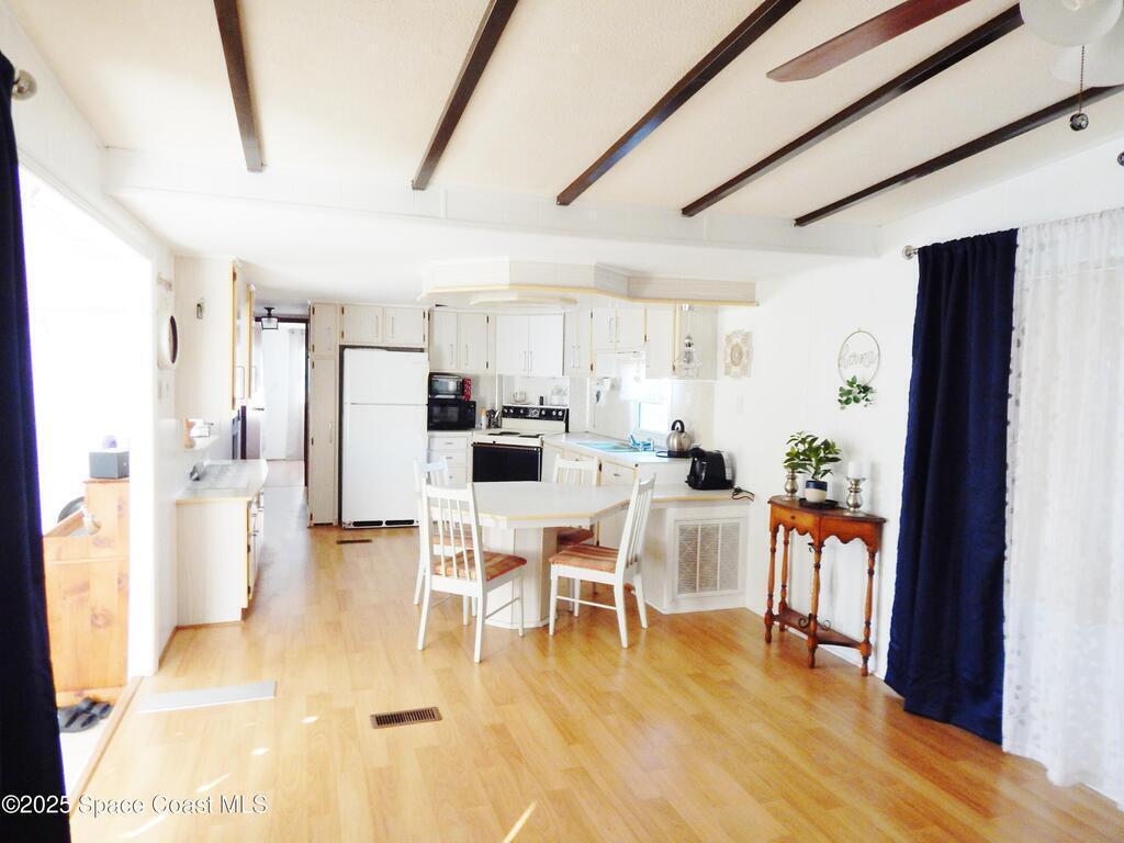 Buyer could not close. Updated 2 Bed 1 1/2 Bath in Palm Bay Estates 55 and over waterfront community. Updates include new hot water heater, interior paint, new plumbing, new sheetrock walls in both bedrooms reconditioned closet doors, new sinks in main bathroom, new lighting the roof, air conditioning, and laminate flooring in 2020. Features include an eat-in kitchen, family room, and enclosed Florida room. The rear of the home has a screened-in patio which includes a hot water heater. The enclosed Florida room is perfect and big enough for an office or extra TV room. Enjoy the breezes up at the outdoor picnic area or sit and throw your fishing pole out and catch dinner. Use the fish cleaning station to clean dinner with no mess in the home. There aren't too many waterfront communities like Palm Bay Estates, so close to the Indian River and 15 minutes to the beach. Minutes to I95 or the mall by Palm Bay Road. Come and enjoy the warm Florida weather.
