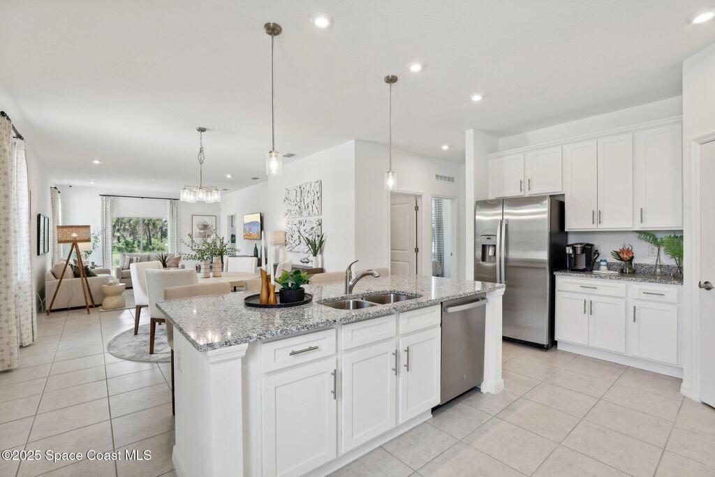 You'll be delighted by all the thoughtful details of this single-family home. An open floor plan, spacious bedrooms, and a gorgeous master suite create a home perfect for entertaining and making the most of every day. From the inviting front porch, a foyer leads to a large kitchen with an adjoining dining and family room, perfect for entertaining. The open-concept kitchen is equipped with modern appliances, a beautiful center island, a large pantry, and the covered lanai is the perfect spot for an evening cocktail or morning coffee. Tucked behind the main living area, you'll find a owner's suite with a huge walk-in closet and dual vanities, as well as two more bedrooms that share a full bath. This home's open layout allows you to enjoy the ease and convenience of single-story living in a stylish, inviting, and modern home.
