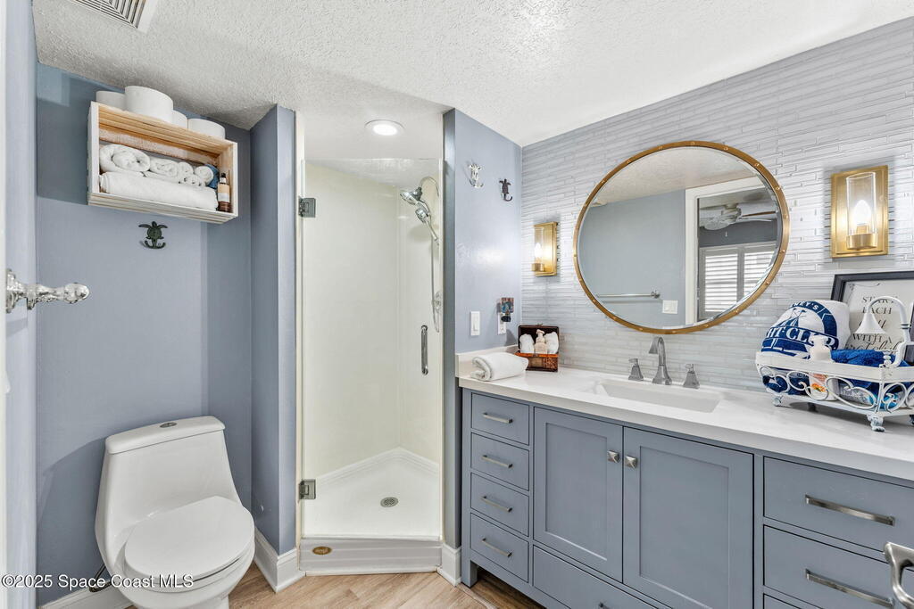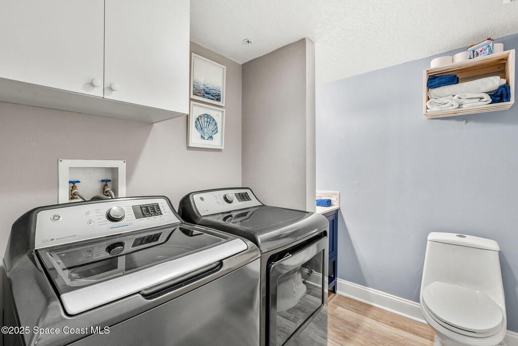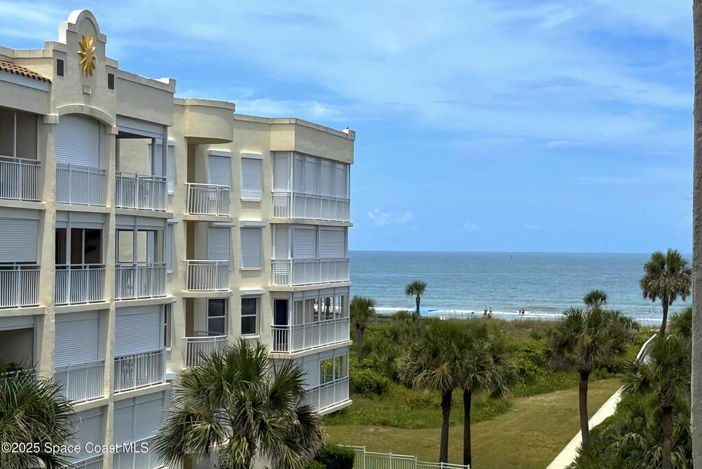 Perfect Beach view Retreat! Shorewood is a hidden tropical, direct ocean front gated community offering resort-style living at its best. Enjoy a huge, heated pool with spa, clubhouse, gym, tennis, pickleball and outdoor BBQ. Features private beach access via two separate boardwalks with seating decks to enjoy the sunsets and ocean breezes. This beautifully updated 4th floor 1 bed, 1.5 bath condo has separate laundry area, and all newer stainless-steel appliances with minimal to no usage. The unit features a spacious north-facing balcony with a convenient brand-new electric rollup hurricane shutter. Enjoy the open views from inside the condo and watch the amazing cruise ships sailing by or the rockets launch right from your private balcony (a rare view to find).