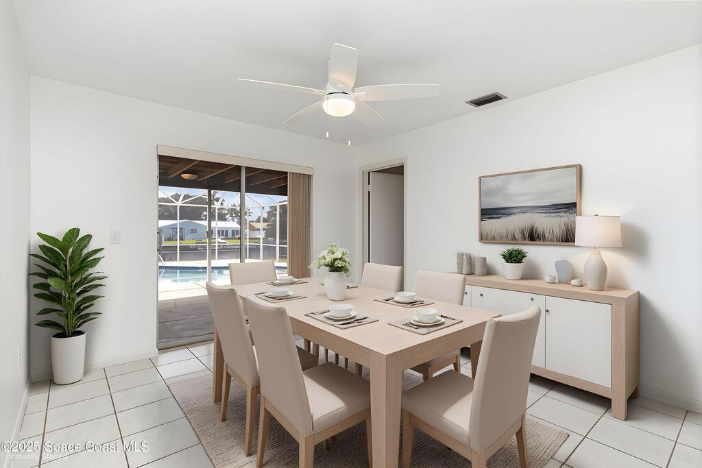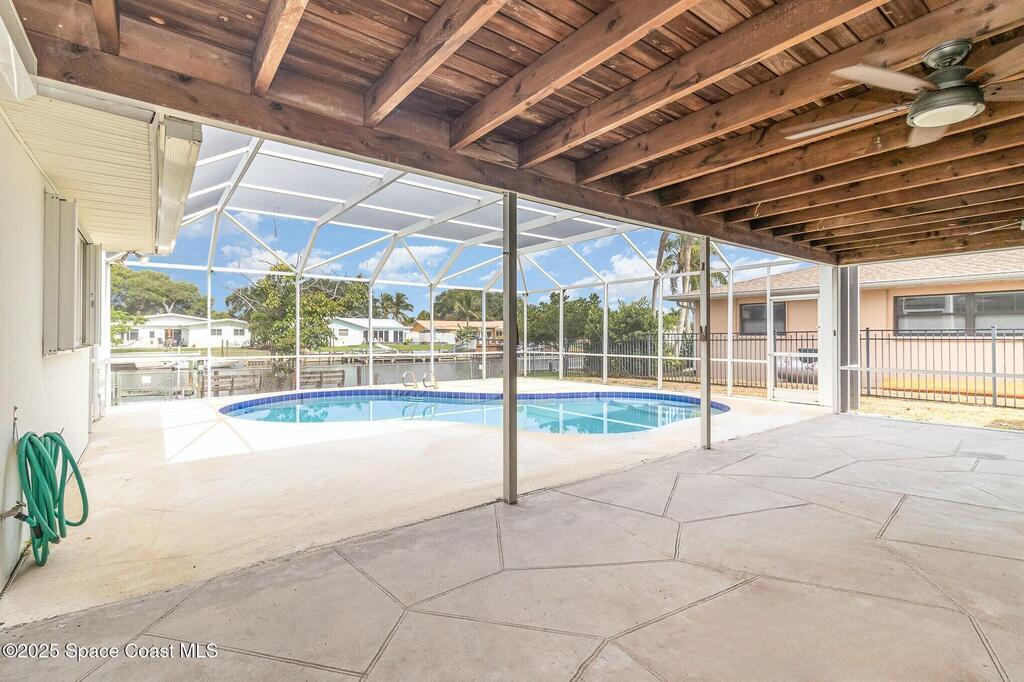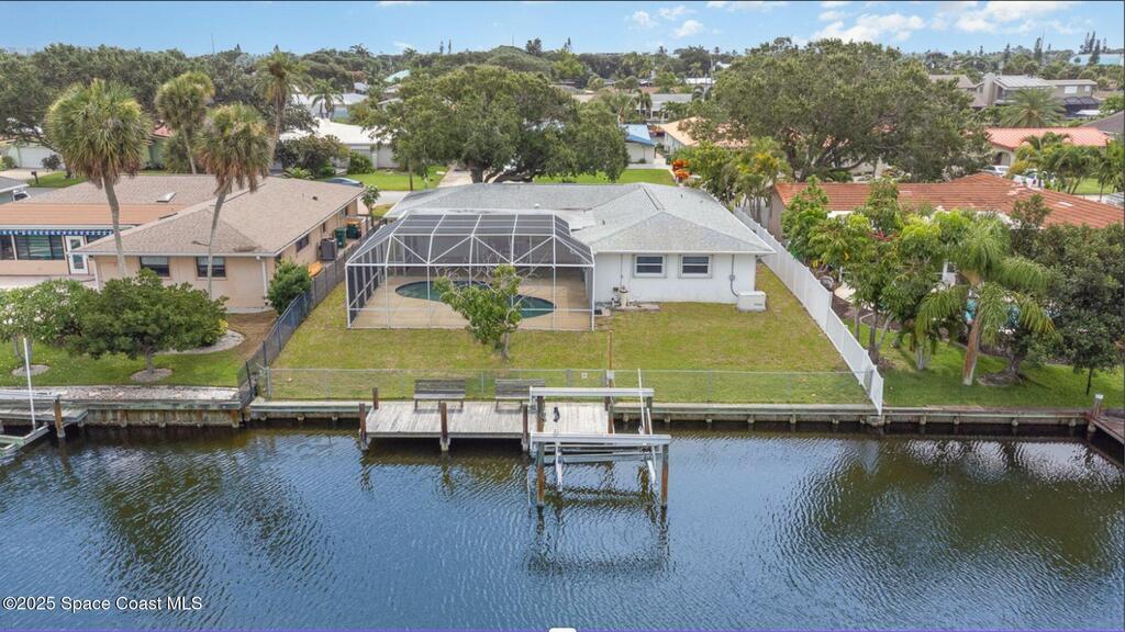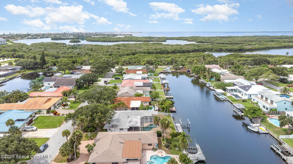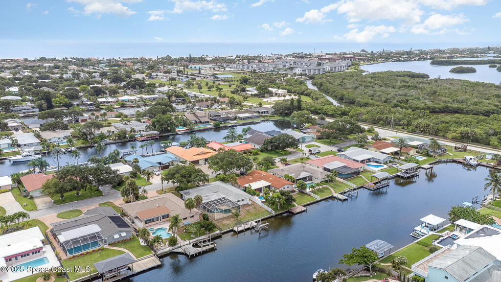 Charming 4 Bedroom, 2 Bath, 2 Car Garage Canalfront Pool Home with ideal split floor plan on a quiet, dead-end street in one of the most sought-after Cocoa Beach neighborhoods! Top-rated Freedom 7 Elementary School only a few blocks east toward the wide, sandy beaches of the Atlantic Ocean. Features include updated Kitchen & Bathrooms with all Wood Cabinetry & Quartz countertops along with brand NEW HVAC (2025), all updated Plumbing (under slab & sewer line), whole-house Generac generator with 500-gal buried propane tank (2021), new Electric Panel & aluminum wire connectors (2019), new Pool Pump (2025), Hot Water Heater (2023), & Roof (2014). Relax under your covered Lanai & screened pool patio for peaceful water views, dolphin & manatee sightings, & stunning sunsets! Updated windows with storm shutters for added protection. Minutes to local dining, boutique shopping, & Cocoa Beach events ~ enjoy the coastal lifestyle you've been dreaming of! Please inquire for a full features list.