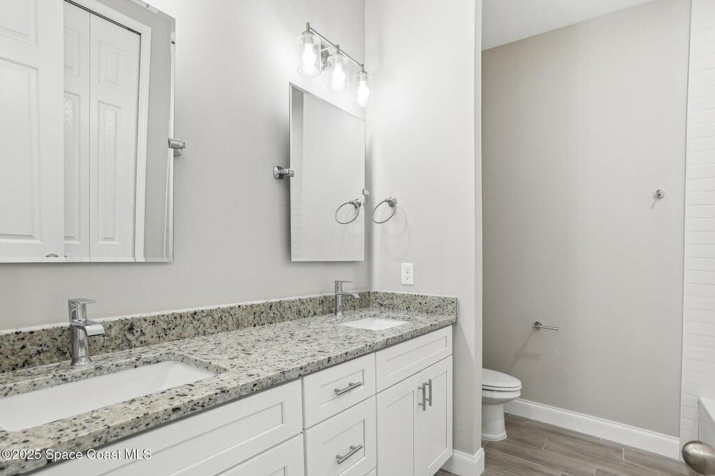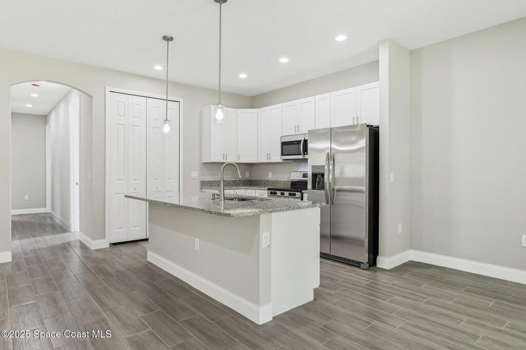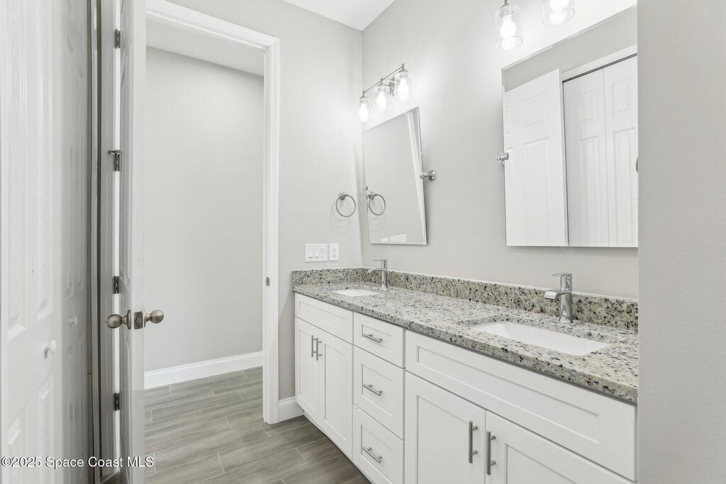 MOVE IN READY - LOW INTEREST RATE LOANS AVAILABLE. One or more photo(s) has been virtually staged--New Construction. This Luxurious 4-bedroom, 2.5 Bath Property is exquisitely built with all of the upgrades nestled in the heart of Palm Bay. Inside you will find a wonderfully open floor plan perfect for gatherings and entertaining. The capacious Chef's Kitchen is stylishly equipped with a prep island, solid wood cabinets, stainless steel appliances and ample storage. The contemporary living space is bursting with natural light and a flowing layout that is inviting and relaxing. Luxuriate in the vast Primary Suite that offers a collection of modern conveniences. This beautiful house is full of INCLUDED upgrades: solid wood soft close cabinets in the kitchen and in the bathrooms, luxury vinyl plank flooring (no carpet), and floor-to-ceiling tiles in the showers, bathroom niches, granite countertops in the kitchen and baths, 9'4'' ceilings, 8-foot doors and an elec garage with controls