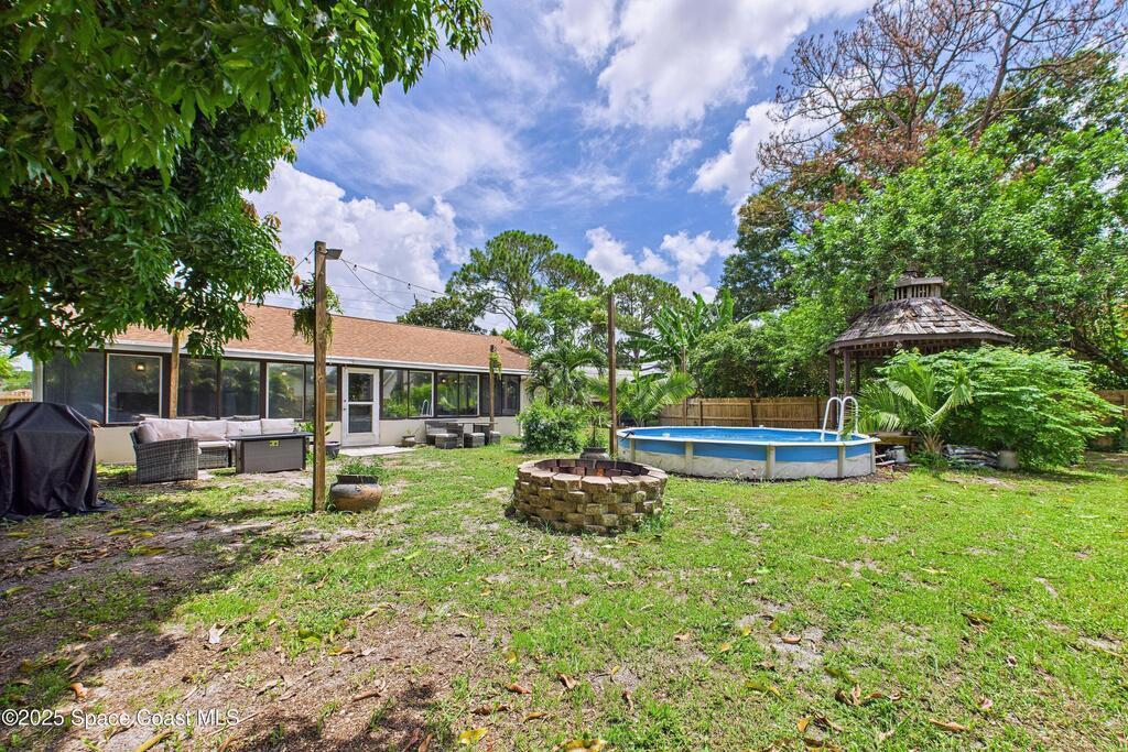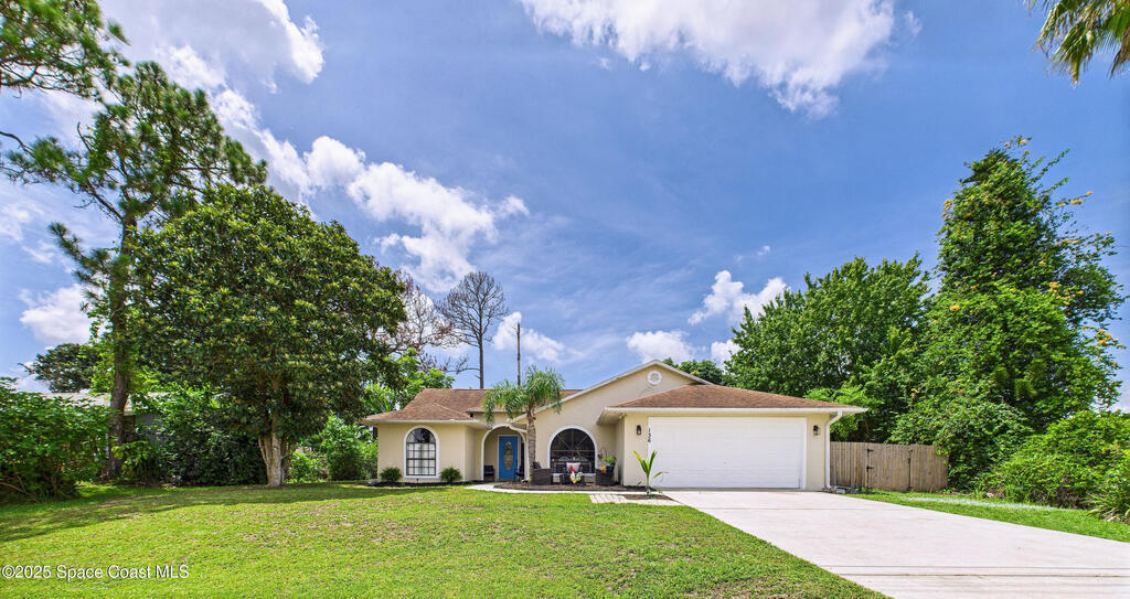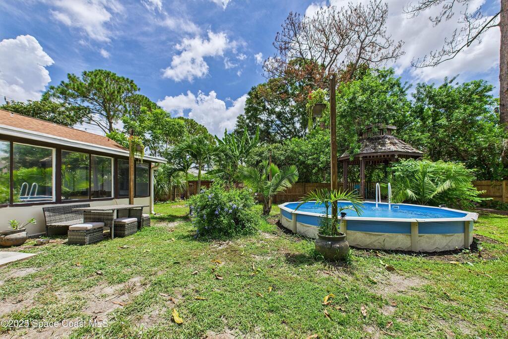 Welcome to your tropical oasis on a spacious 0.35-acre lot in NW Palm Bay! This 3-bedroom, 2-bath home is packed with charm. Enjoy a 15ft around by 5ft deep 5,000-gallon chlorine pool half in-ground, half above for year-round enjoyment, featuring a brand new pump and filter. The lush backyard is a fruit lover's dream, with mature mango, orange, and loquat trees. Inside, the master bath has been remodeled, the roof was replaced in 2019, and the AC is from 2023. Located just 3 minutes from Heritage Parkway with easy access to shopping, highways, and Orlando. Peaceful, private, and move-in ready!