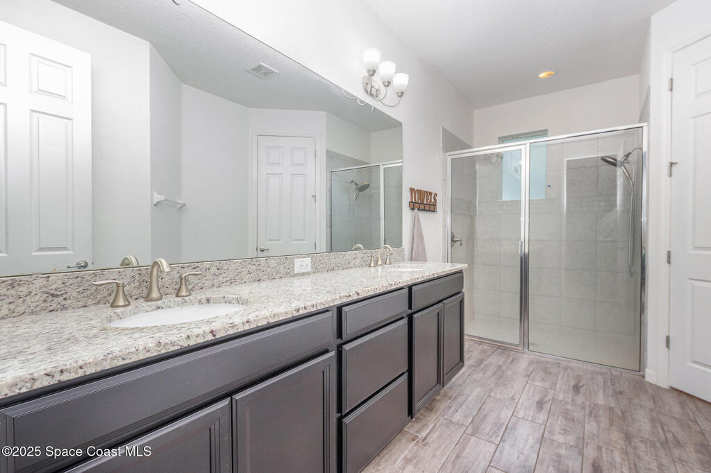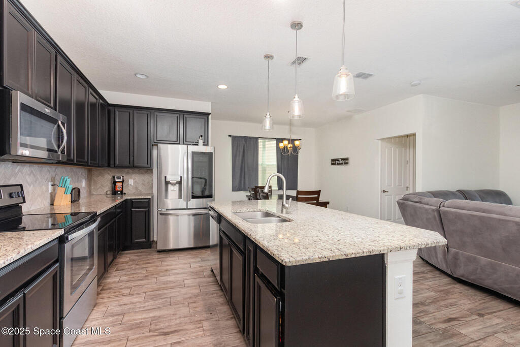 4% Assumable FHA Rate! Welcome to the desirable gated community of Wynham Preserve! This beautifully upgraded Walton II model features 5 spacious bedrooms and 3 full baths, including a main-floor primary suite plus a second master upstairs--an ideal setup for multigenerational living or flexible use. The chef's kitchen is sure to impress with 42'' espresso cabinets, granite countertops, stainless steel appliances, a walk-in pantry, center island with sink, pendant lighting, and a striking herringbone tile backsplash. Granite countertops extend into all three baths, with the primary bath offering a luxurious walk-in tiled shower. Additional highlights include upgraded lighting, ceiling fans in most rooms, and elegant tile flooring in the main living areas. Outdoors, the fully fenced backyard with sleek aluminum fencing provides both privacy and style for everyday enjoyment. Perfectly located just minutes from major highways and Sanford International Airport.