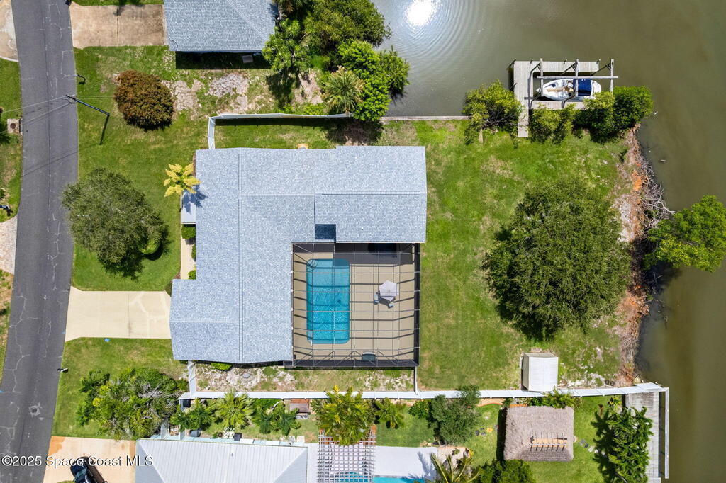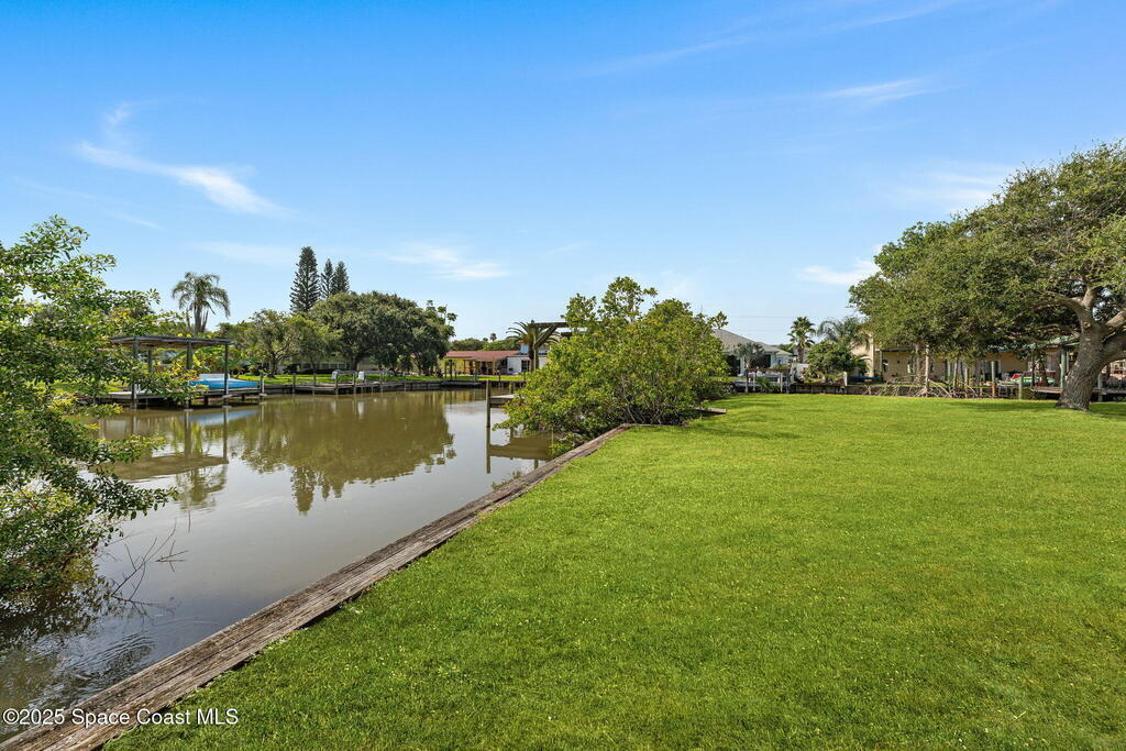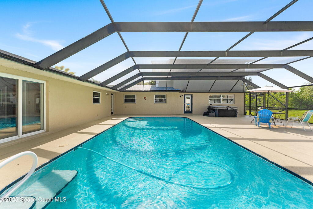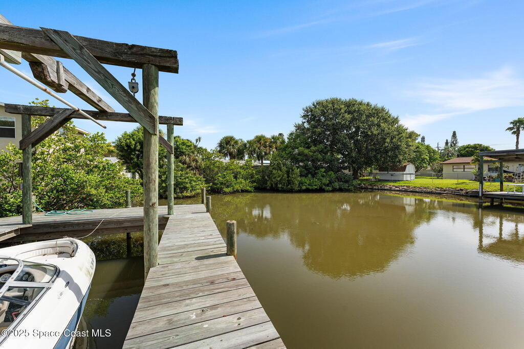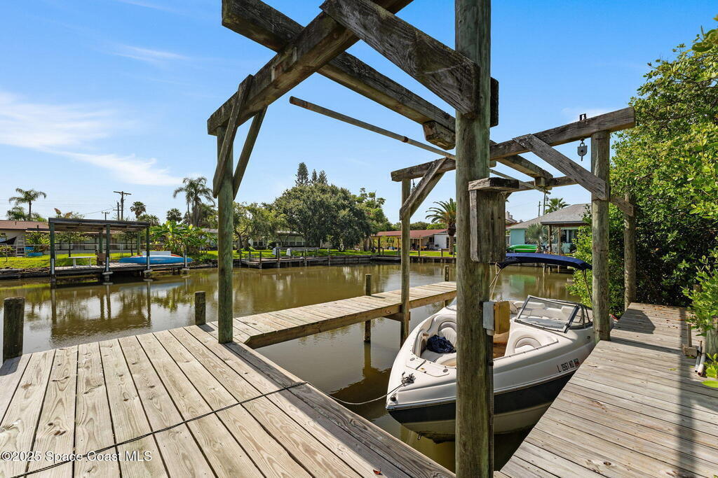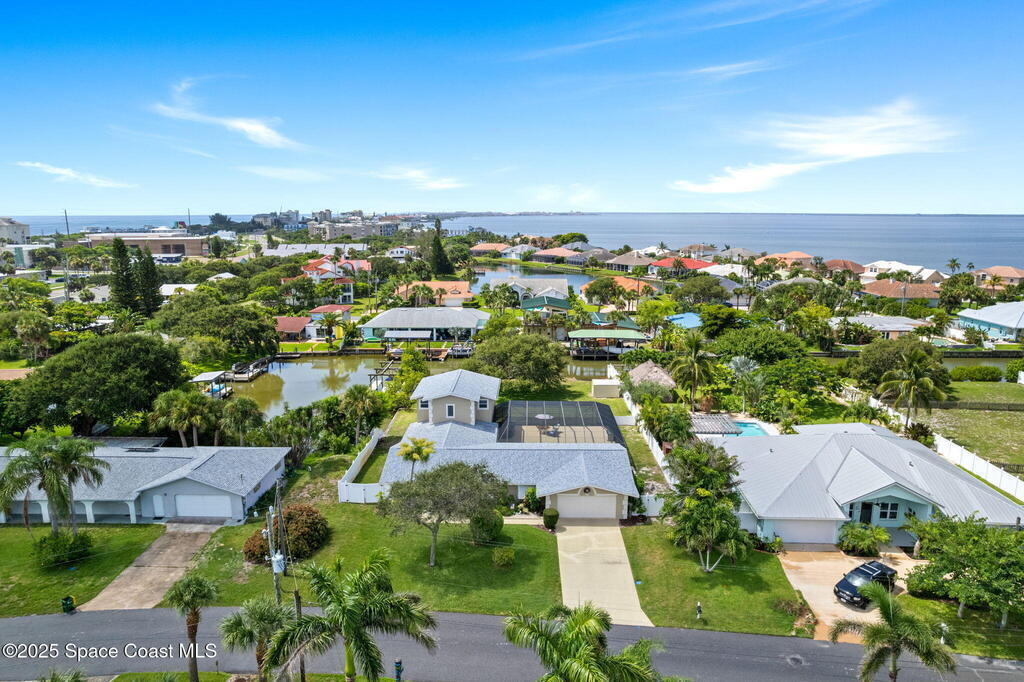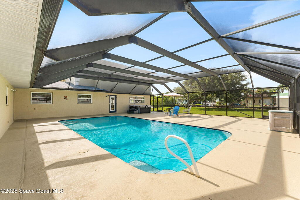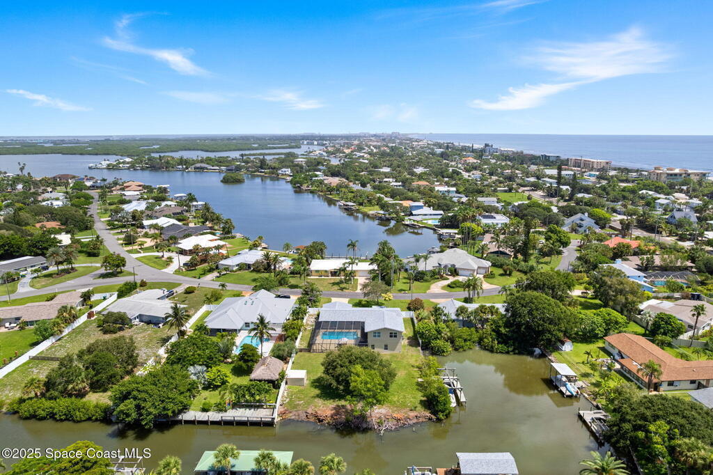 This is a rare opportunity to own in sought after Snug Harbor in unincorporated Cocoa Beach on nearly a 1/2 acre corner canal lot w/boat dock, large screen-enclosed saltwater pool, tons of living space (3376 sqft), 6 bedrooms, 4 w/ensuite baths and 2 first floor all with water views. A private, wheelchair accessible in-law suite has pool access and water views. Bonus room can be a bedroom, study/den or gym. The 25' boat dock offers water/electric. The oversized enclosure provides additional outside living space poolside with hot tub while opening to the expansive back yard with fenced dog run, ramp for kayak/boat launch and tons of possibilities. This home provides easy Banana River boating access while being just down the street from the Atlantic Ocean. With manatees, birds and wildlife all around, this home is a sanctuary for nature lovers. Recent upgrades include fresh paint (inside & out), NEW Bahama shutters, updated kitchen countertops, new ceiling fans and hurricane windows.