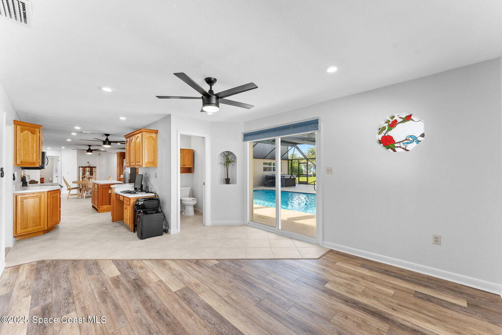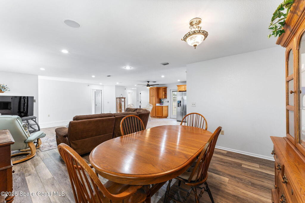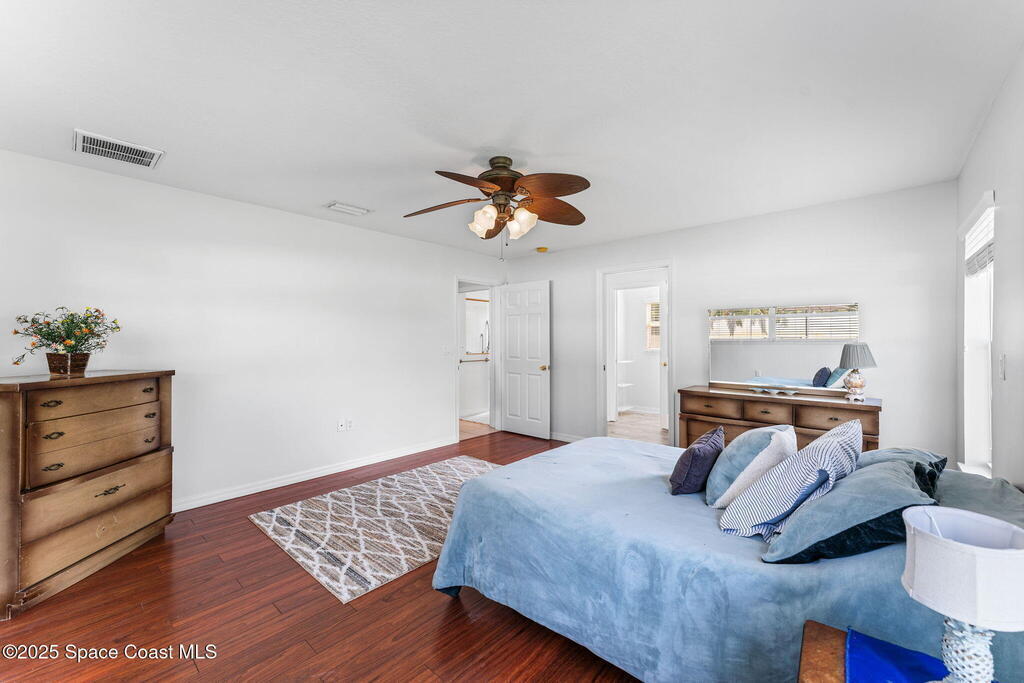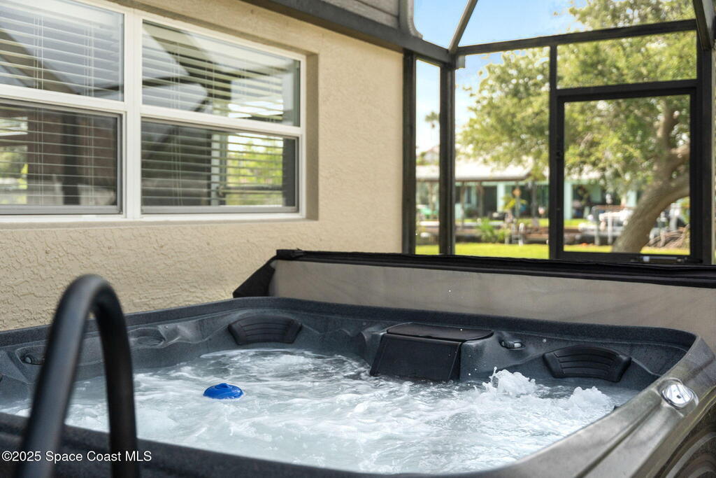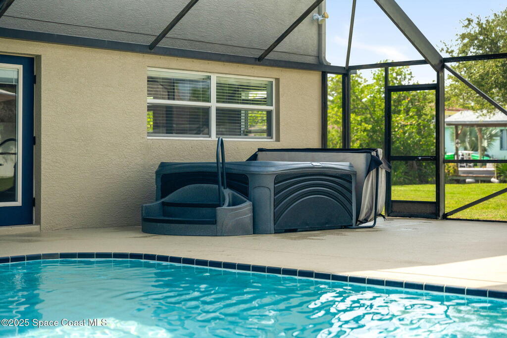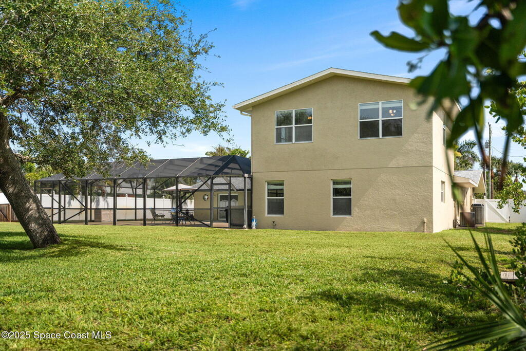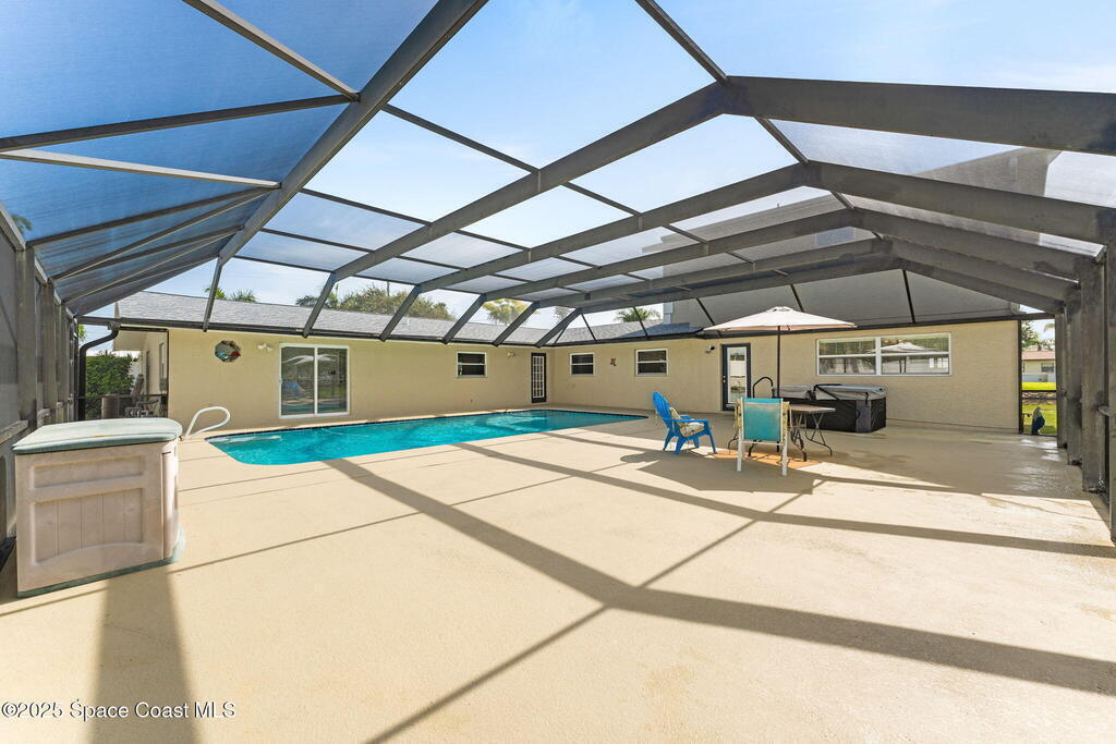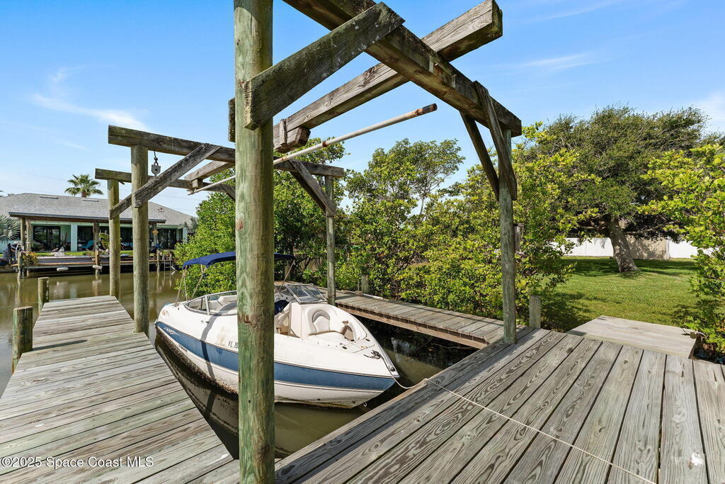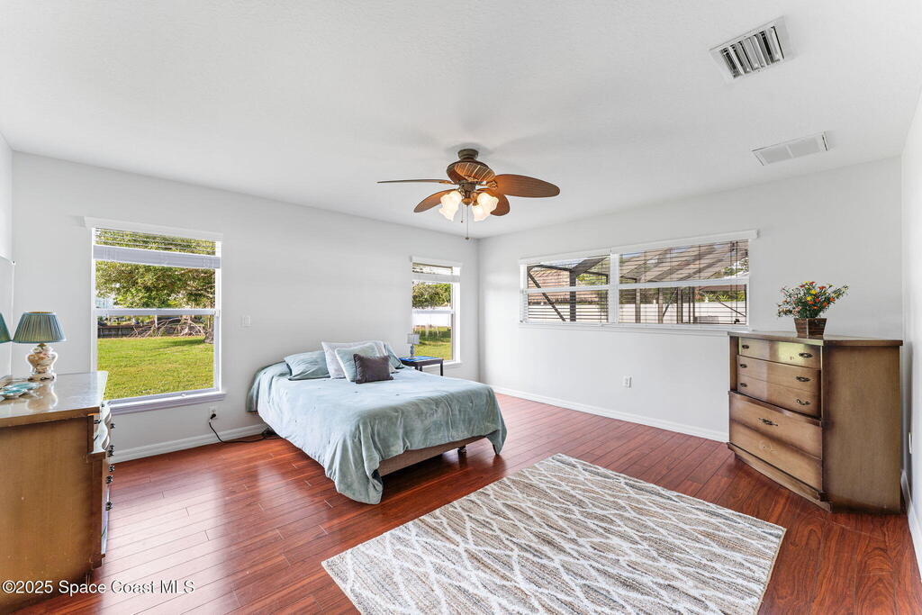 This is a rare opportunity to own in sought after Snug Harbor in unincorporated Cocoa Beach on nearly a 1/2 acre corner canal lot w/boat dock, large screen-enclosed saltwater pool, tons of living space (3376 sqft), 6 bedrooms, 4 w/ensuite baths and 2 first floor all with water views. A private, wheelchair accessible in-law suite has pool access and water views. Bonus room can be a bedroom, study/den or gym. The 25' boat dock offers water/electric. The oversized enclosure provides additional outside living space poolside with hot tub while opening to the expansive back yard with fenced dog run, ramp for kayak/boat launch and tons of possibilities. This home provides easy Banana River boating access while being just down the street from the Atlantic Ocean. With manatees, birds and wildlife all around, this home is a sanctuary for nature lovers. Recent upgrades include fresh paint (inside & out), NEW Bahama shutters, updated kitchen countertops, new ceiling fans and hurricane windows.