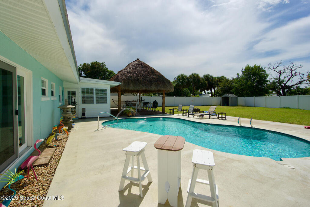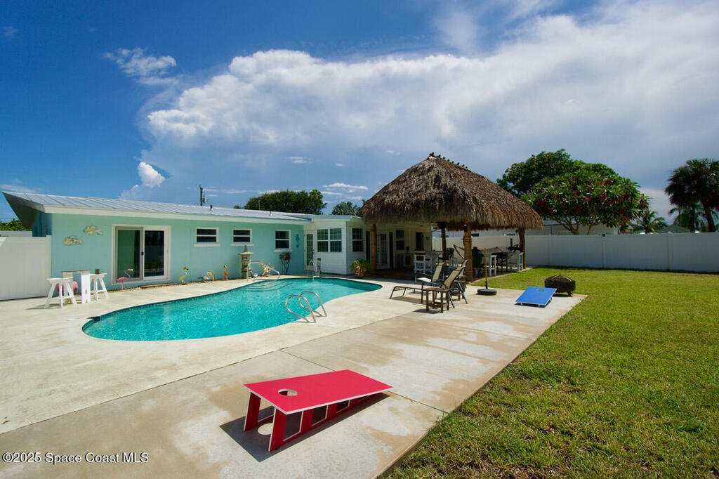 Discover your slice of Melbourne beach! This 3 bedroom, 2 bathroom home offers the perfect blend of comfort ,updates, and outdoor living.Step inside to find brand-new tile floors throughout, a bright and airy layout, and plenty of space for relaxing or entertaining. The versatile Florida room provides extra living space year-round, while the garage and workshop add convenience and functionality. The backyard also has an amazing pool which is a must have for Florida living.Out back you'll fall in love with the fantastic yard complete with a tiki hut - the perfect spot for entertaining , unwinding or enjoying Florida evenings under the stars.