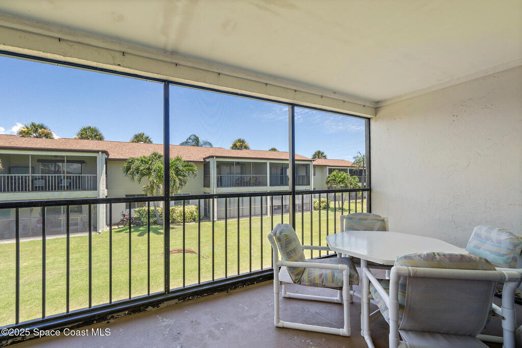 Lowest HOA fee in the area and no pending assessments! Seller is motivated. Rarely can you find a move-in ready beachside condo at this price. Whether you're looking for a full-time residence or a smart investment, this well-maintained 2-bedroom, 2-bath condo in the heart of Cape Canaveral is a perfect fit. The spacious eat-in kitchen opens to a bright living area, with sliding glass doors leading to a large screened balcony where you can relax and enjoy the ocean breeze. Both bathrooms feature timeless finishes, including tile showers and granite-topped vanities. Enjoy great closet space, in-unit washer and dryer, one assigned parking space, and plenty of guest parking. The community offers a beautiful pool, clubhouse, and tennis courts. All within walking distance to groceries, restaurants, shopping, and entertainment. Seller has already paid the $7,000 special assessment for a brand-new roof in 2024.