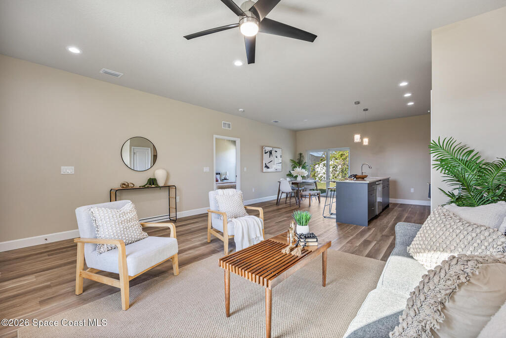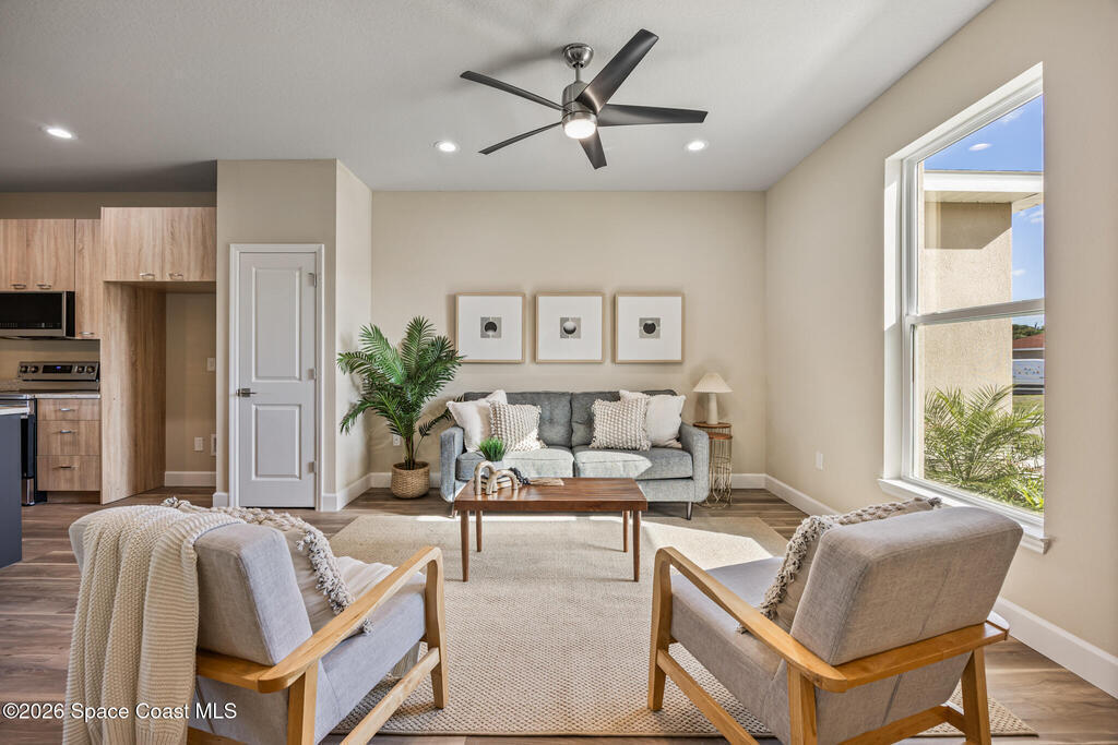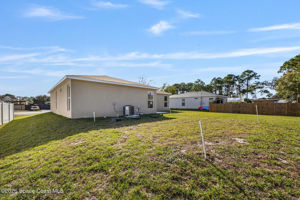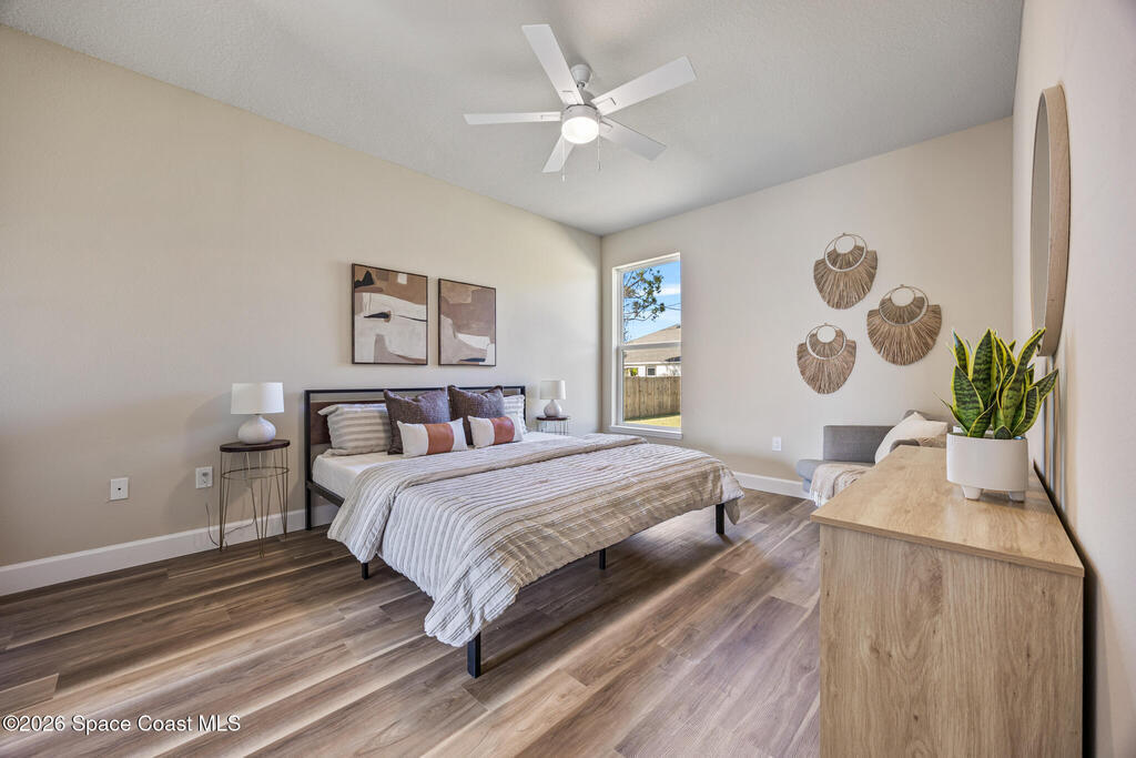 NEW construction! The energy-efficient 38'' x 78'' hurricane-impact windows and 2 car insulated garage door offer peace of mind and exceptional protection in this stunning semi-custom 4-bedroom, 2-bathroom, split plan concrete block home. This beautiful home is finished in warm, subtle tones and nestled on .24 of an acre. Enjoy a spacious open floor plan with expansive 9'4'' ceilings and easy-care plank flooring. The kitchen is designed for entertaining with a large breakfast bar, granite countertops, undermount sink, pendant lighting, 42'' upper cabinets for added storage, and stainless steel appliances. The luxurious primary bathroom showcases a free-standing soaking tub, elegant designer tile, an oversized walk-in shower with glass enclosure and granite countertops with dual sinks. The large primary bedroom features His and Her closets for convenience and organization.Ceiling fans, an indoor laundry room. $5,000. Flex cash towards prepaids, closing costs and interest rate buydown.