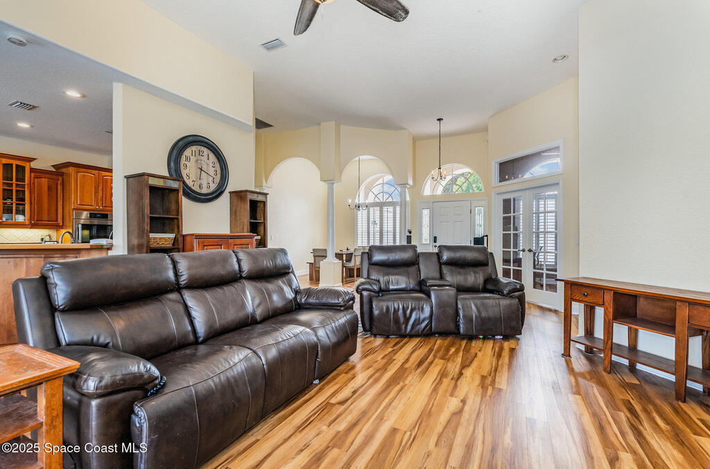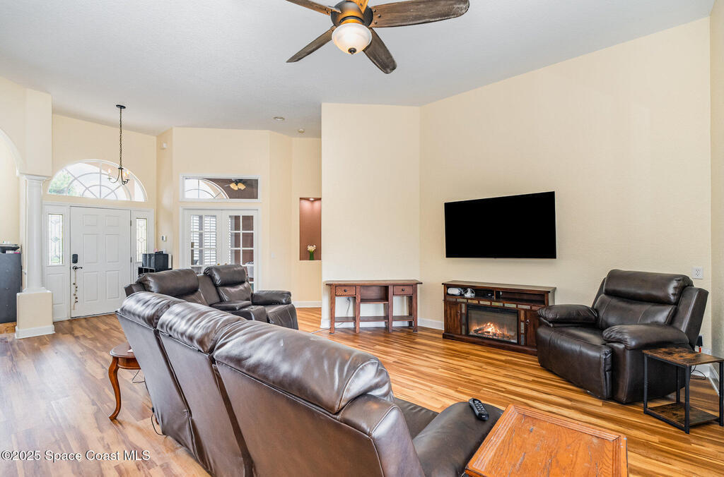 Beautifully updated 4-bedroom + office + bonus room home with 3 full baths and stunning lake views. As you enter, the remodeled living room immediately showcases breathtaking water views. The spacious kitchen features stainless steel appliances, a breakfast bar, and overlooks the pool and lake. The primary suite offers a walk-in closet, double vanities, garden tub, separate shower, and peaceful water views. Upstairs includes a private living area with bedroom and full bath--ideal for guests or multi-generational living.Enjoy the screened lanai with sparkling pool and serene lake backdrop--perfect for relaxing or entertaining. Major updates include 2 new AC units (2023), new flooring throughout (2023), sealed garage floor (2023), new pool heater (2023), and exterior paint (2024). Conveniently located near shopping, A-rated schools, and just 15 minutes to the beach.