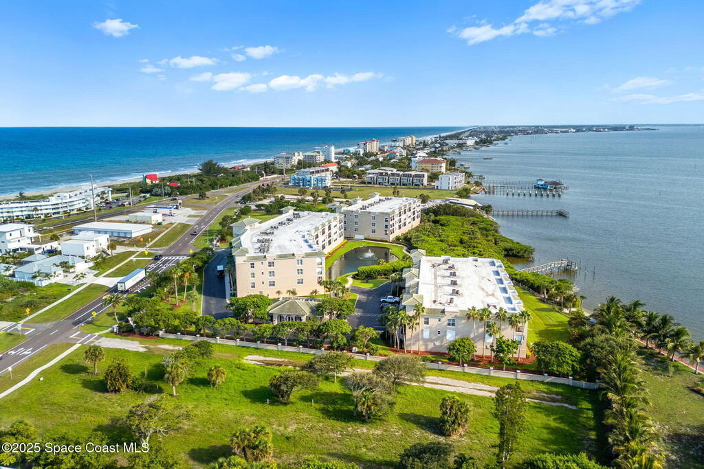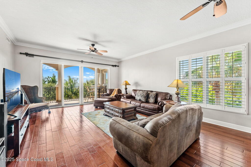 Riverfront living takes center stage in this top floor panoramic-view condo overlooking the scenic Intracoastal, where every detail is designed for comfort, beauty & ease. Behind 32ft of waterfrontage is a brand-new AC to keeps things crisp, while 10' ceilings, crown molding, & impact-rated windows w/ timeless plantation shutters elevate every space. 8' sliders--outfitted w/ electric blinds--open wide to a breezy balcony perfect for soaking in those endless water views. The kitchen shines w/ quartz counters, KitchenAid & Whirlpool appliances, a GE fridge & breakfast bar, while hardwood floors add warmth to the dining & living areas. All bedrooms feature en-suite baths, including a luxe primary suite w/ double-door entry, built-in closets, marble-floored bath, jetted tub & glass shower. Enjoy the ease of fresh paint, full laundry w/ sink & 3 garage spaces (32, 33, 34). The amenity-rich & SIRS complete building offers a spa, pool, gym, clubhouse, elevator & sunset dock.