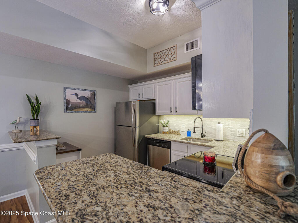 Beautifully renovated condo located just minutes from the ocean in the highly sought-after, gated Fountainhead community. This move-in ready residence offers 2 beds, 2 baths, and a rare 1 car garage. Enjoy serene pond views from the back porch - an ideal setting to relax & watch the local wildlife. Recent updates & upgrades include a new roof, A/C, granite tops, SS appliances, new bedroom flooring, fresh paint, and more. An excellent opportunity for a primary residence or seasonal retreat. Condo may be purchased fully furnished & turnkey at the asking price of $255,000. Rm sizes approximate.