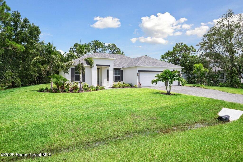 Come view this Stunning 2025 New Build on a large .85 acre lot backing to an Eagle Preserve on CITY WATER w/ many UPGRADES and Home Warranty! This home's automation features control lights, thermostat, front door, and garage door with effortless ease. Office/Flex Space, Striking Waterfall Island, Soft-Close Cabinets, Dual wall microwave and oven, Cleverly Concealed Walk-in Pantry, Two Ensuite Bedrooms, Primary Large Walk-in Closet, Additional sound insulation in Bathrooms, Primary Bedroom, and Laundry Room creates peaceful zones throughout the home.This impressive 2,246 sq ft residence features 4 bedrooms (2 ensuite bedrooms & 2 guest bedrooms), 3 full bathrooms, 3 car garage, office/flex space, creating an ideal setting for both family living and entertaining. Enjoy outings at the nearby Grant-Valkaria Community Park & the Habitat Golf Course just minutes away.Schedule your tour today!