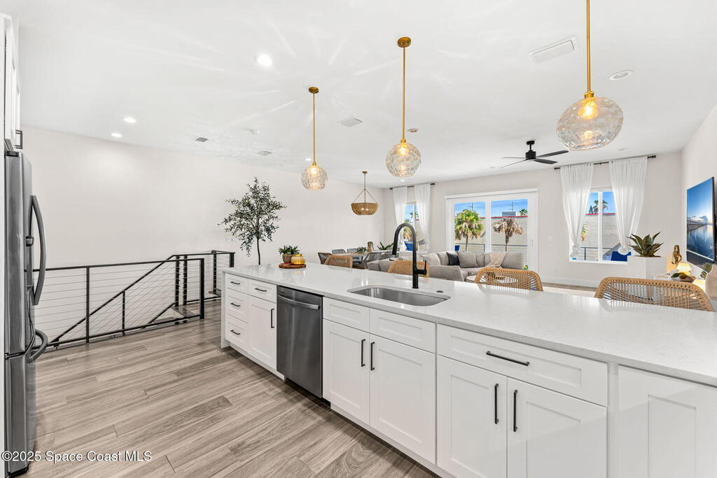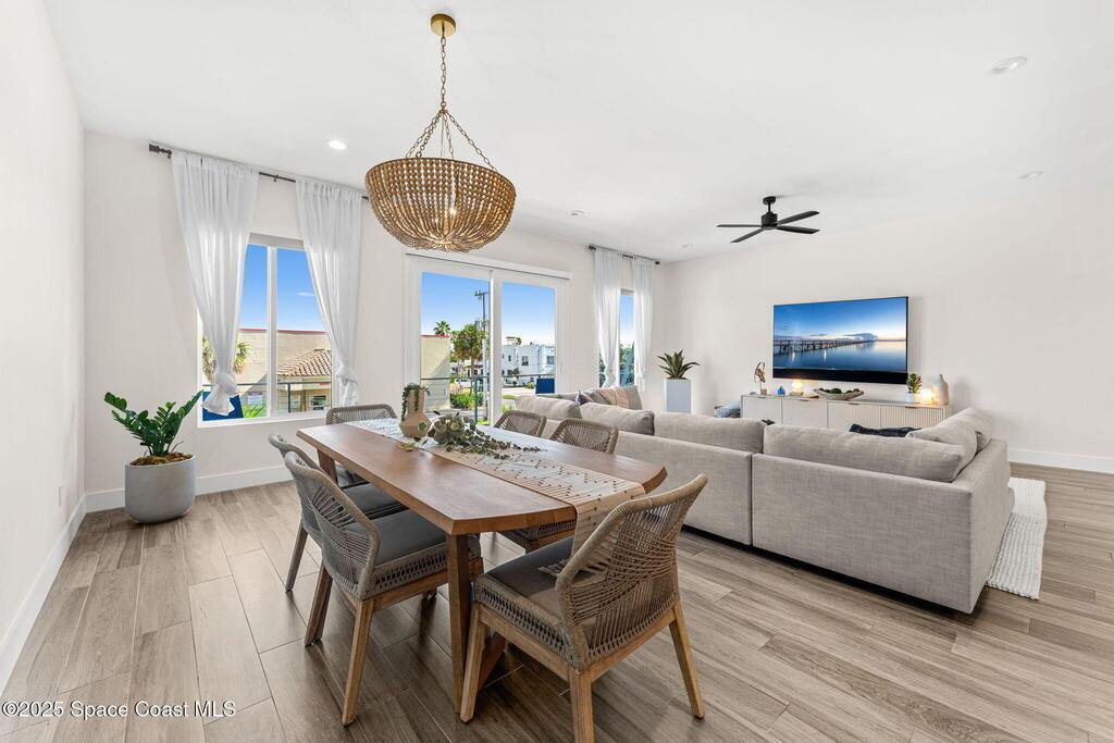 Just steps from the Atlantic shoreline and one block from Indialantic's 5th Ave dining and shopping district, this newly built 3-bed, 2.5-bath townhome delivers the kind of beachside living where every day feels like vacation. 90 Day Rental Min. Constructed in 2023 with concrete construction and hurricane impact windows and doors, this townhome pairs modern design with a relaxed coastal vibe, featuring breezy tile floors throughout and an open-concept layout that blends the kitchen, dining, & family room into one effortless entertaining space. The kitchen is the heart of the home with cascading quartz countertops and high-end appliances including a wine cooler. The primary suite offers a walk-in closet & spa-inspired bath with a walk-in shower. On the first level, 2 additional spacious bedrooms with a full bath and game room provide plenty of space for family and guests. Electric window coverings, whole house water treatment, custom closets, custom wallpaper & accents walls.