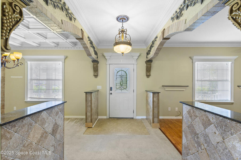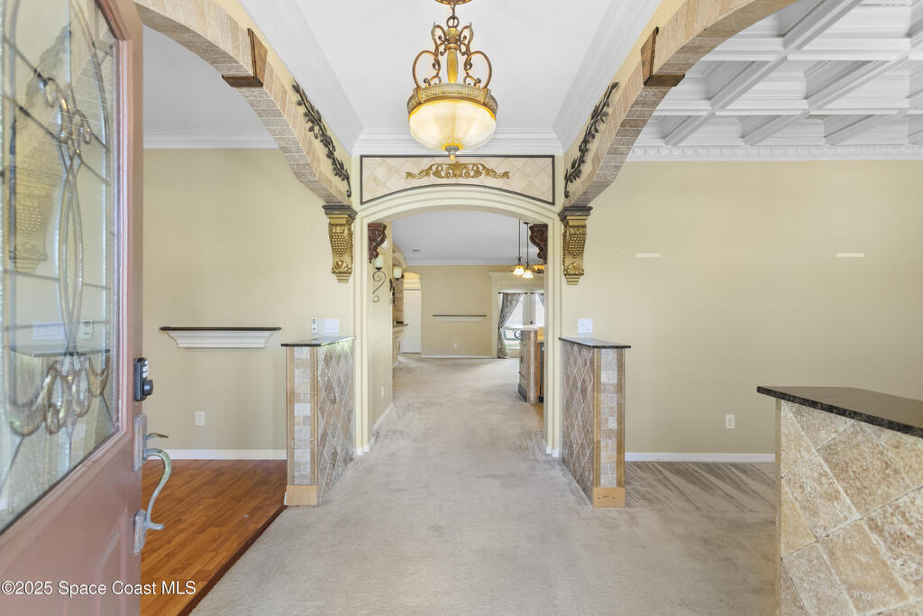 10K towards the buyer's closing costs! Custom Home with Exceptional Craftsmanship Throughout. Step into timeless elegance in this beautifully crafted home where every detail speaks of artistry. The formal dining room is a true showpiece, featuring a hand-crafted coffered ceiling & a stunning inlaid marble wall, setting the perfect backdrop for unforgettable gatherings. Custom-designed doorways with intricate crown molding enhance the architectural richness of every room. The spacious family room has custom marble which surrounds the TV area, turning it into a work of art. The eat-in kitchen combines function & beauty, boasting built-in storage units, ideal for keeping everything organized while maximizing space and style. Tile laid on both the front porch and back patio. This home is a rare find for those who appreciate handcrafted details and truly custom design throughout. All this in a quiet neighborhood with no HOA. The beauty and location of this house is a win win.