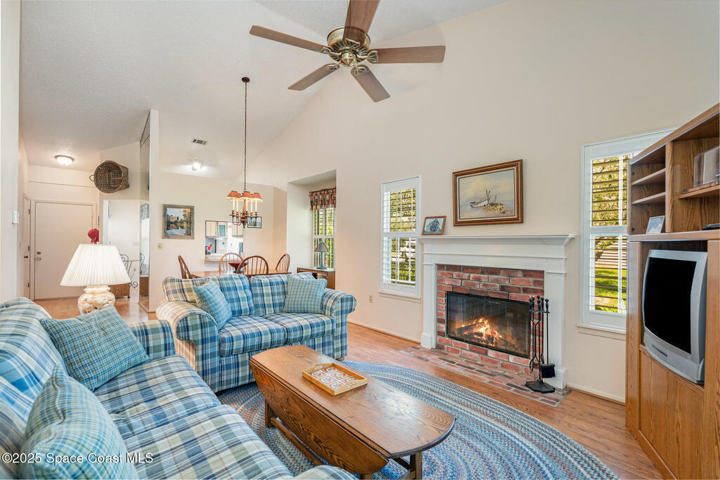 WHY Rent? Own this Villa that is Priced to Sell! Make homeownership a reality. A one story home with vaulted ceilings and a cozy wood-burning fireplace creates the perfect retreat. Large primary bedroom has it own bathroom with lots of closet space. The enclosed lanai with energy efficient windows adds additional living space perfect for relaxing. Enjoy the convenience of an Attached Garage with in your own driveway and plenty of extra parking. Large kitchen with plenty of cabinets. Under air storage in the attic. No steps. HVAC replaced in 2023. HOA fees include cable, internet, water and pest control as well as grounds and outside structure maintenance, including roof. This ideal location is just over a mile to Florida Institute of Technology making it an ideal investment. Lake in the Woods community also offers an optional membership with access to the community pool, clubhouse, tennis courts and gym. Minutes to shopping, dining, downtown Melbourne, and beautiful beaches.
